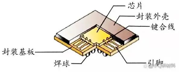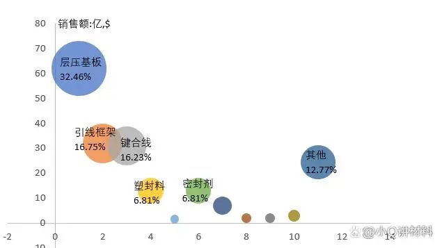 芯片的封装材料主要包括封装基板、引线框架、键合丝、塑封料等四类材料。这四类材料的市场份额在芯片封装材料里占70%以上。