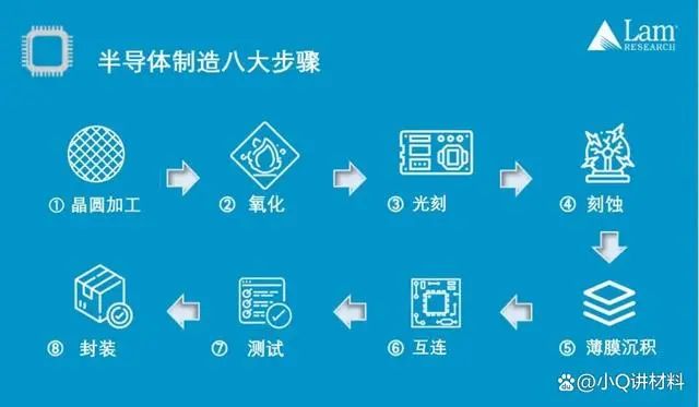通过上述的图片,我们已经初步了解了制造一枚芯片的流程,芯片制造的困难不仅仅包括设备,同时也包括材料方面的问题。接下来,笔者分别介绍芯片制造中所用到的重要材料。