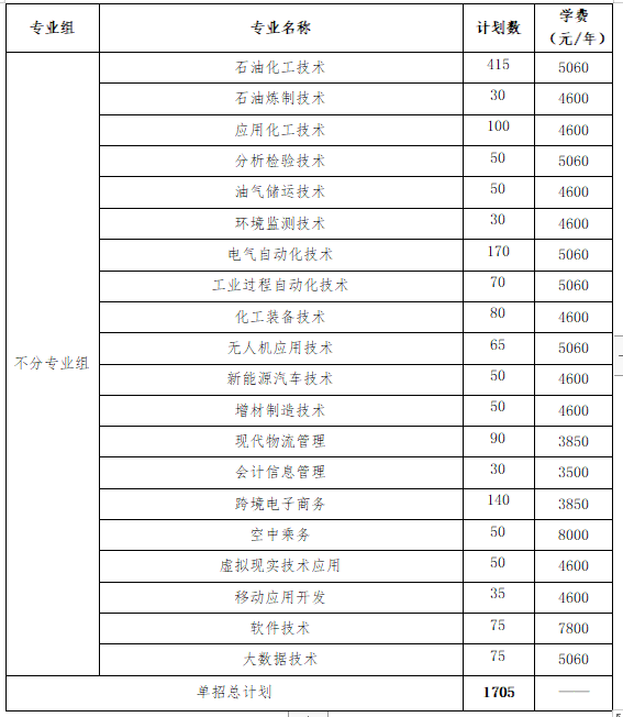 2.其他社会人员(农民工、下岗失业人员、新型职业农民和企业在岗人员)计划300人,其中石油化工技术专业200人;电气自动化技术专业60人;跨境电子商务专业40人。