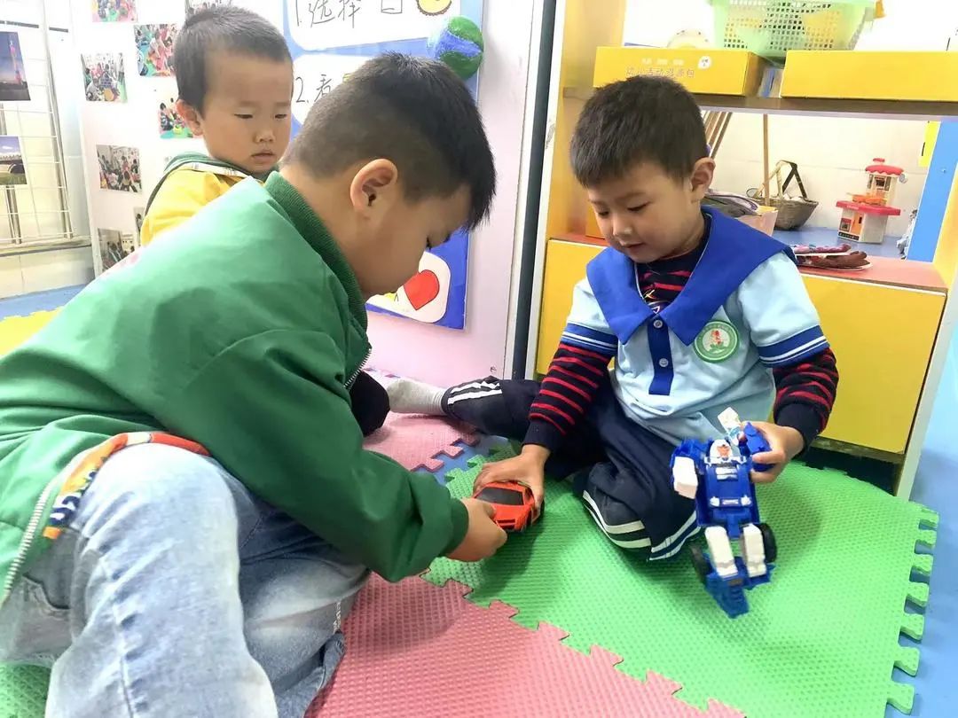 在成人眼里,“平等”是交易的前提;而在孩子眼里,“高兴”就是交换的理由。孩子们手捧自己喜欢的玩具,根据自己的意愿,大胆地与同伴交流,这种快乐的体验让孩子们享受到自己做主的成功,也收获了同伴间分享的快乐。
