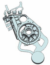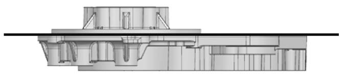 分型面设计如图2所示。为了从型腔中顺利取出后端盖压铸件,在铸件最大截面处设置分型面,并综合考虑包紧力的影响,使压铸件在开模后留在动模处,利用动模上的顶杆推出工件。