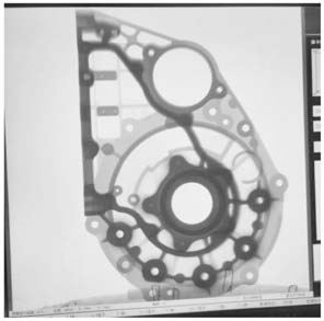 对模具结构优化后进行生产,经检验,设置局部挤压后的压铸件产品质量良好,X射线探伤结果如图9所示,无明显孔洞缺陷。