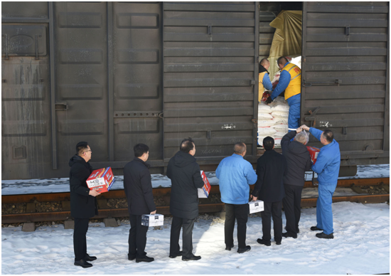 天脊集团总经理助理、销售公司经理王福生,天脊集团副总经济师、销售公司党委书记雷红,销售公司副经理孟占福、高梧楠,销售公司铁运部部长司华伟等早早来到铁运车站,看望慰问押运员,并欢送大家押运启程再出发。