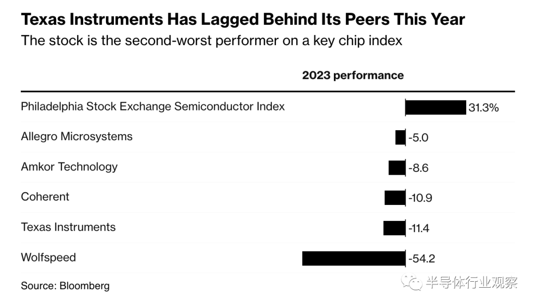 尽管其他芯片制造商的股价有所反弹,但德州仪器 (TI) 的股价在 2023 年仍下跌了 11%。这使其成为费城证券交易所半导体指数中表现最差的成员之一。