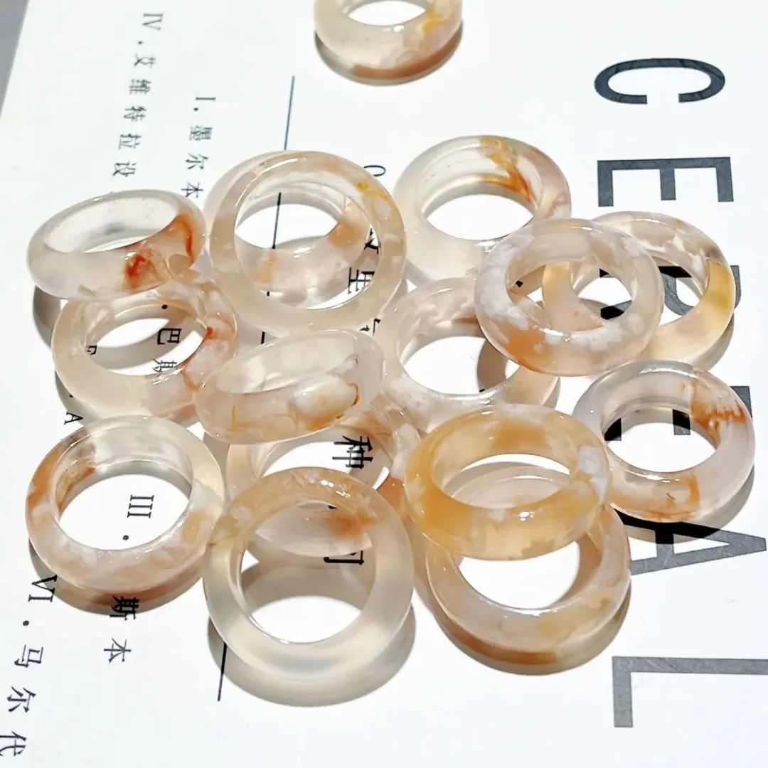 纯天然材料,品质保障 这些樱花玛瑙珠子是纯天然的,没有经过任何人工处理,因此保留了原本的自然之美。它们散发出的自然光泽和纹理,让您的指环更加独特。使用纯天然材料制作的首饰,不仅美丽,还让人感到安心和放心。