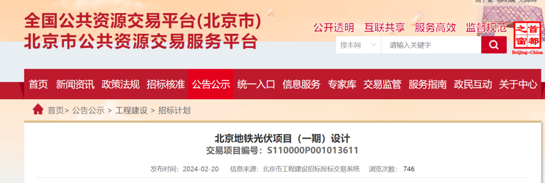 北京地铁光伏项目(一期)设计招标计划