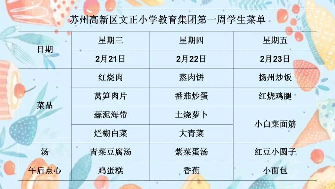 中医·食养 | 苏州高新区文正小学教育集团第一周食谱