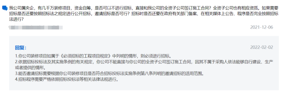 国家发改委在其官方网站对有关必须招标工程范围和招标投标行业中的疑难问题进行了集中答复和回复。一起来看~