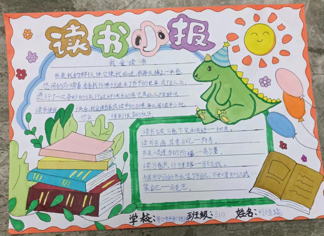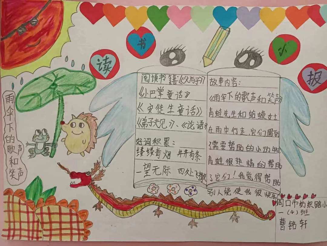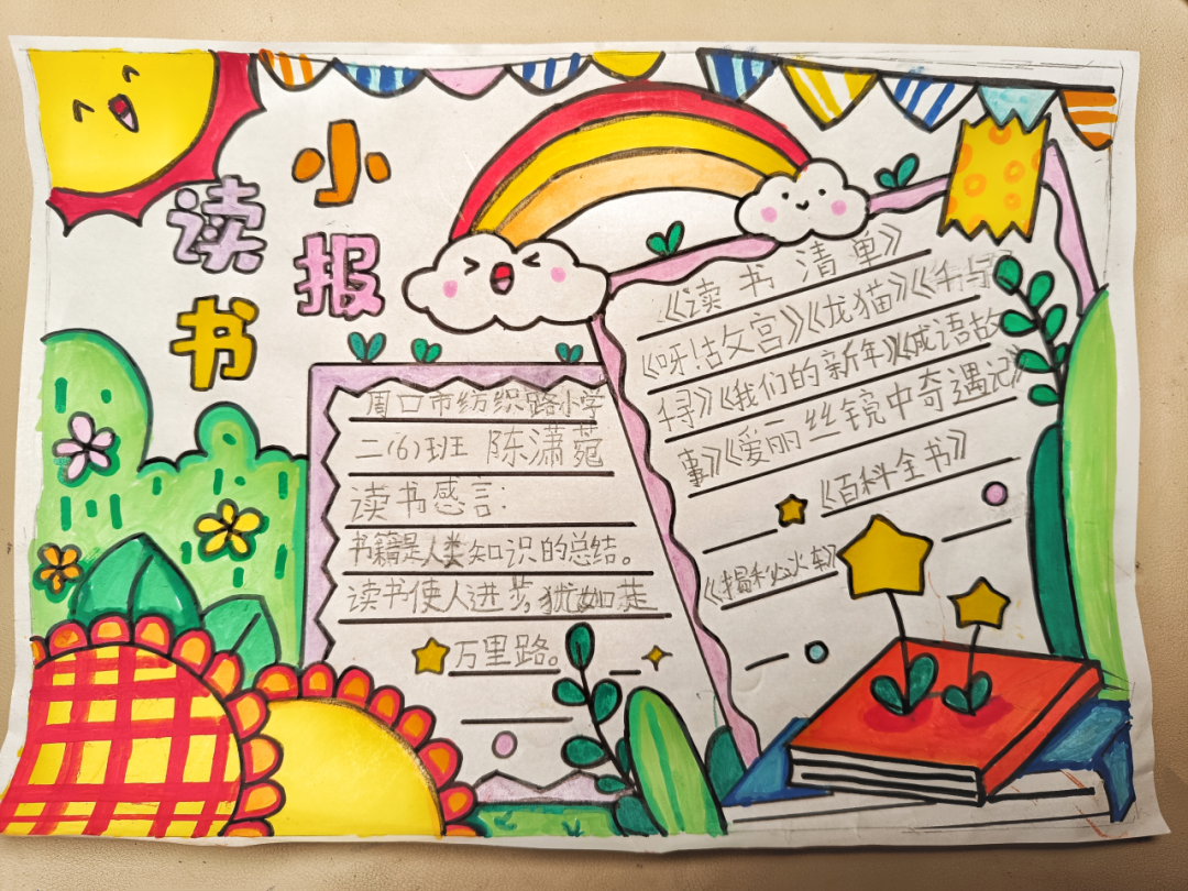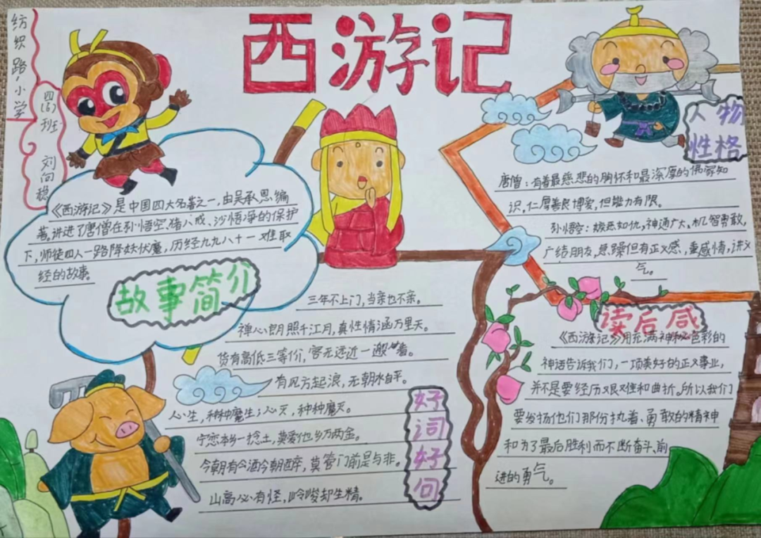 读一本书,就是在同书中的人物对话。那一个个人物,一个个情节,或幽默或动人,早已在眼前鲜活地站了起来,给同学们留下了深刻的印象。图文并茂的阅读手抄报,涉及中外名著介绍、读书体会、读书故事、读书名言、思维导图、精美诗文选编等,充分反映了孩子们在读书活动中的所思所感所获。
