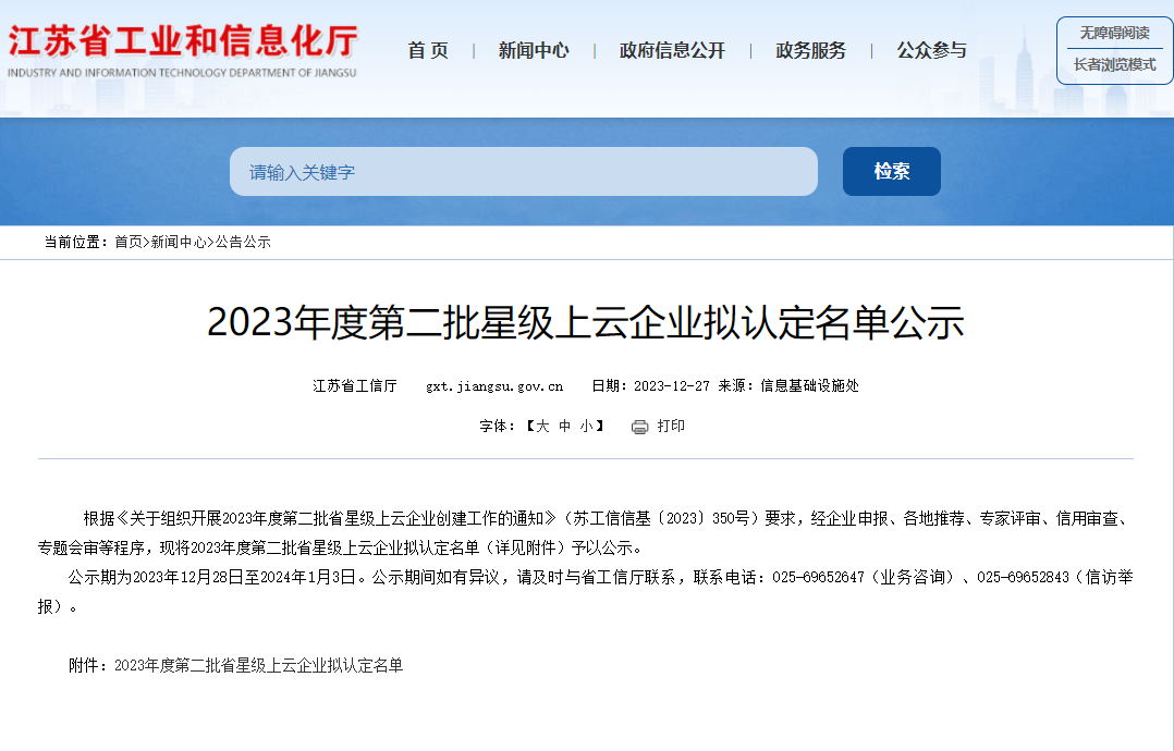 近日,江苏省工业和信息化厅公布了2023年度第二批省星级上云企业名单,江阴市有6家企业获评5星级上云企业,获评数量无锡第一;2023年全年共有9家企业获评省星级上云5星级企业。