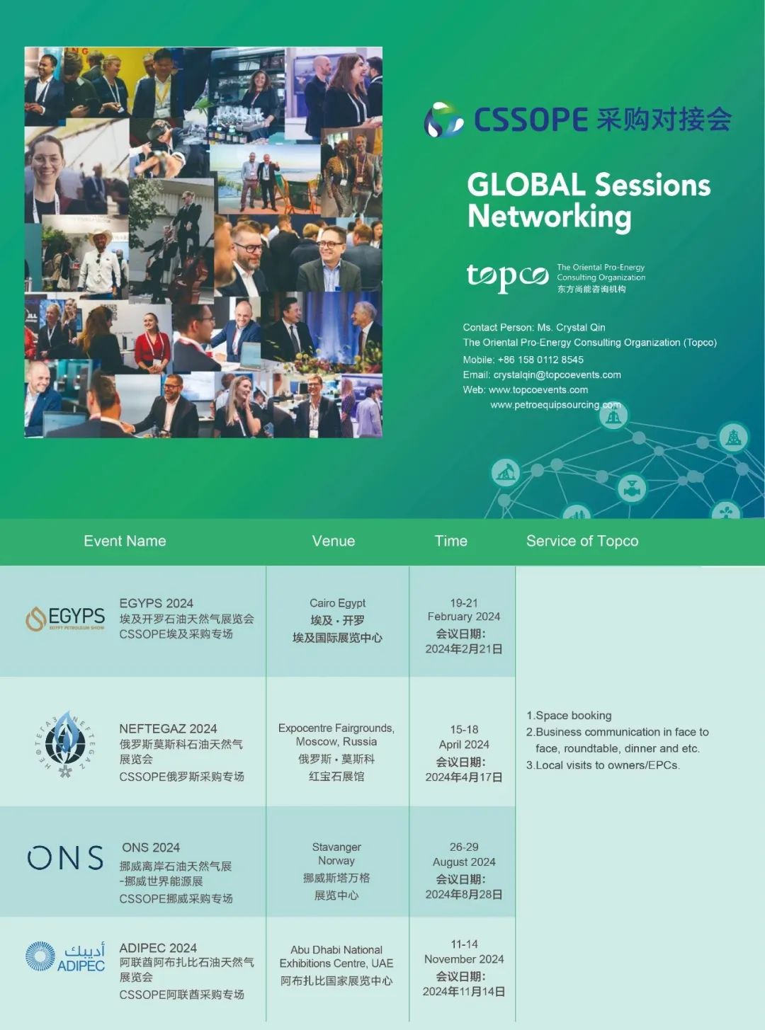 第十四届中国石油化工装备采购国际峰会暨展览会CSSOPE平台将聚集众多您在其他场合难以见到的石油化工行业用户和采购单位,是您一次性见最多客户的绝佳场所,特别是外贸方向最全面的采购和供应链人员,可以建立人脉,了解行业问题与趋势,和采购及外贸大佬们相互探讨学习,同时,大会也是采购管理人员互相交流采购经验和战略、了解和筛选考察优秀供应商的最佳渠道。总而言之,CSSOPE将汇聚各大业主、EPC、油服及贸易公司的采购人,可以发布他们的采购清单与需求,设备企业和服务企业也可以展示自己的产品和服务,广阔的人脉、共享的资源,广大采购商买家在CSSOPE等你!