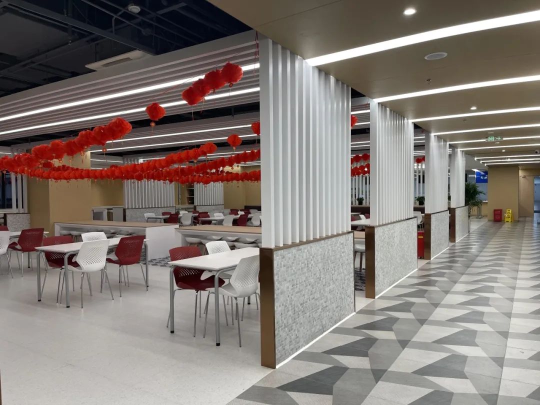 改造后职工餐厅环境整洁,布置温馨,提供自选档口、面档、特色档口等多种就餐选择,早餐供应中式面点、禽蛋类、粗粮、煎烙等近二十种餐品,午餐可供应15种以上自选菜品、面点及特色餐。