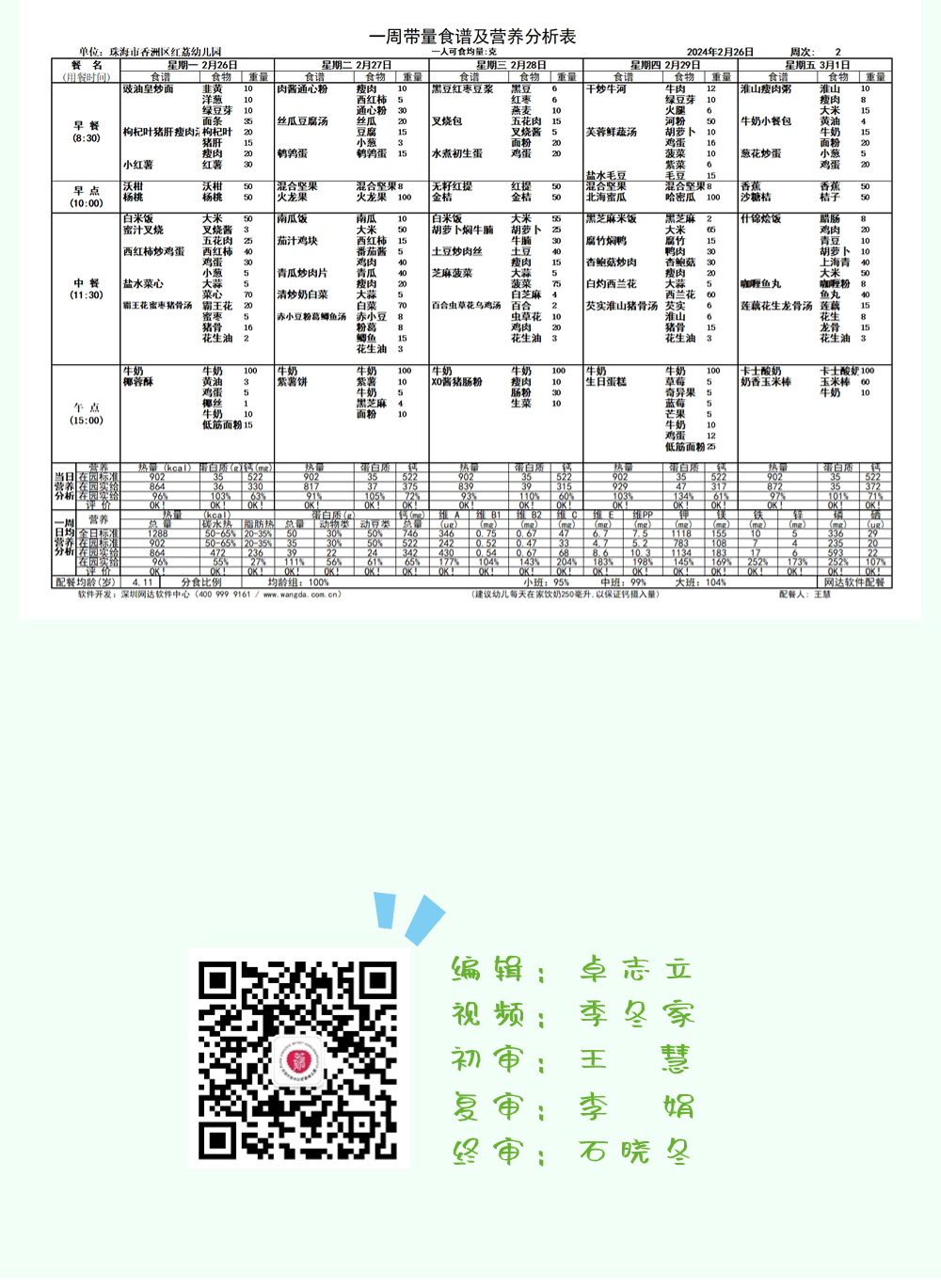 【食在红荔】珠海市共乐幼教集团红荔园区(红荔幼儿园)第二周幼儿营养食谱
