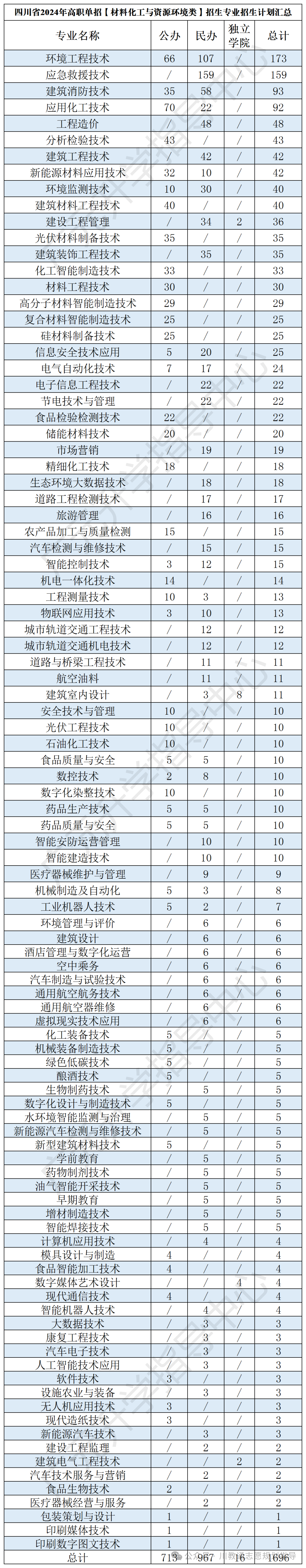 图2:2024四川单招【材料化工与资源环境类】专业招生计划汇总