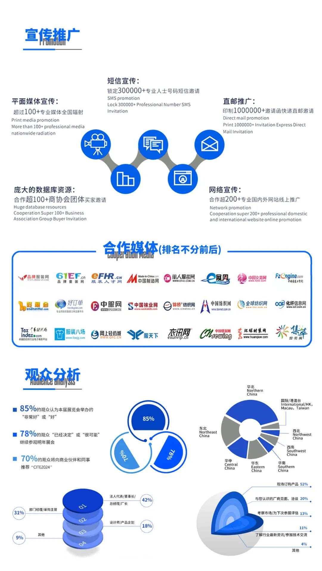“CITE2024”博览会连续三天的展出,将会吸引 63000(不完全统计)名业内买家入场参观,其中服装制造商和外贸进出口公司占到了全场的 87%。