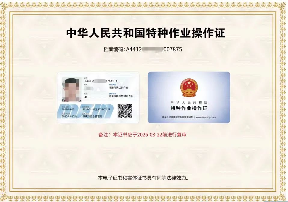 电工、焊工、高空作业、切割作业上岗证,由安监局发证,按《中华人民共和国安全生产法》规定,特种工作人员须持证上岗。
