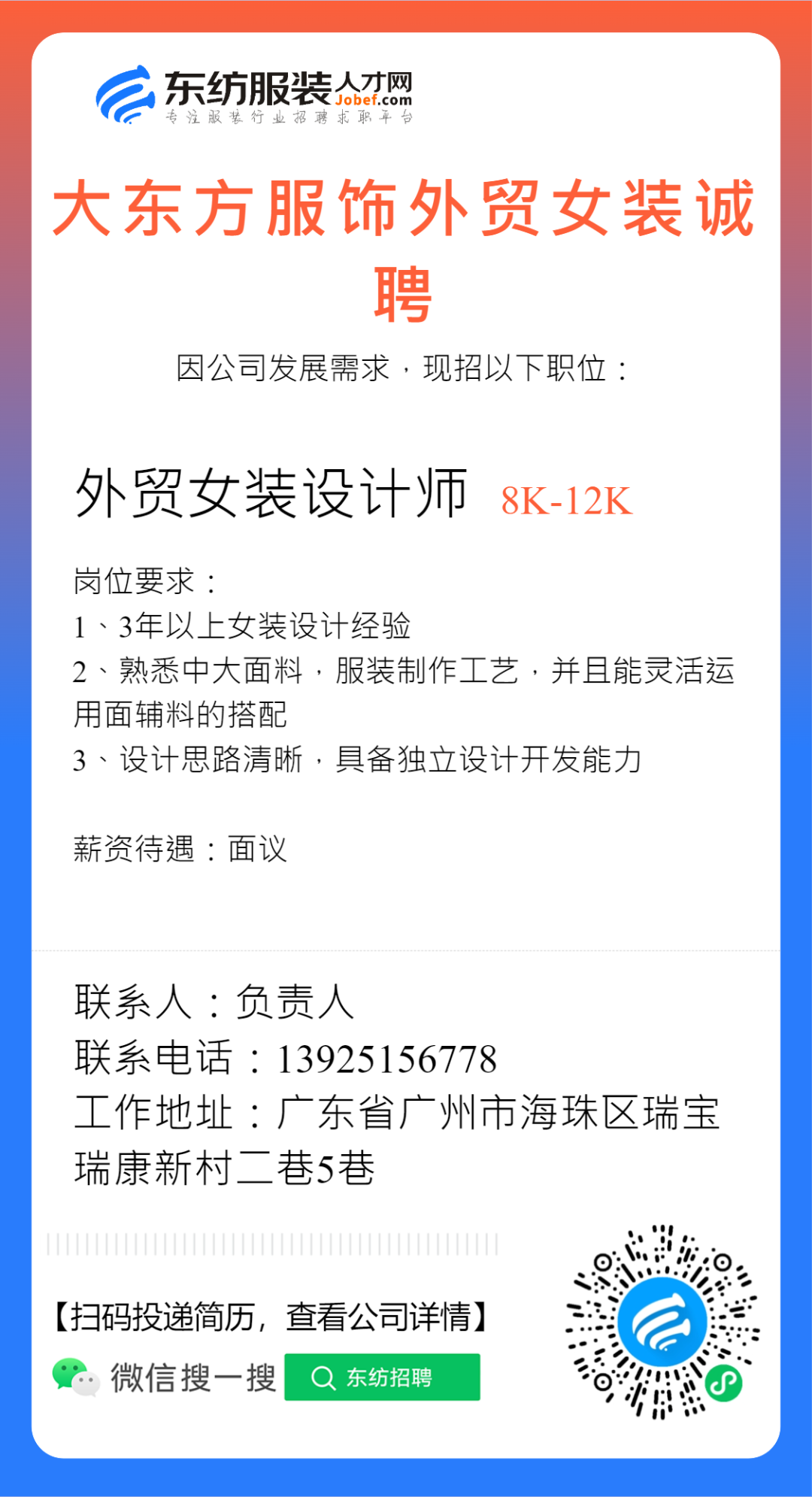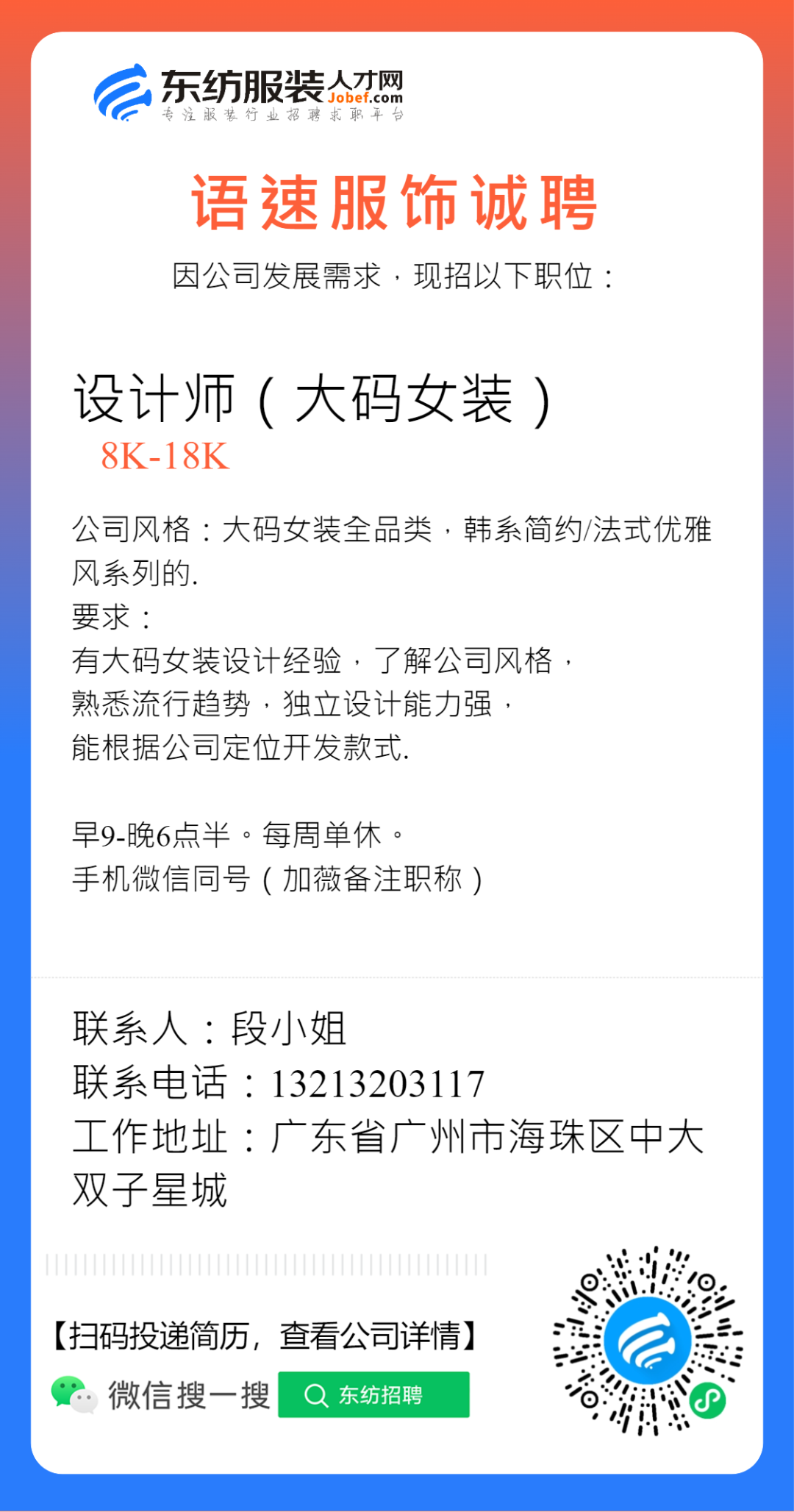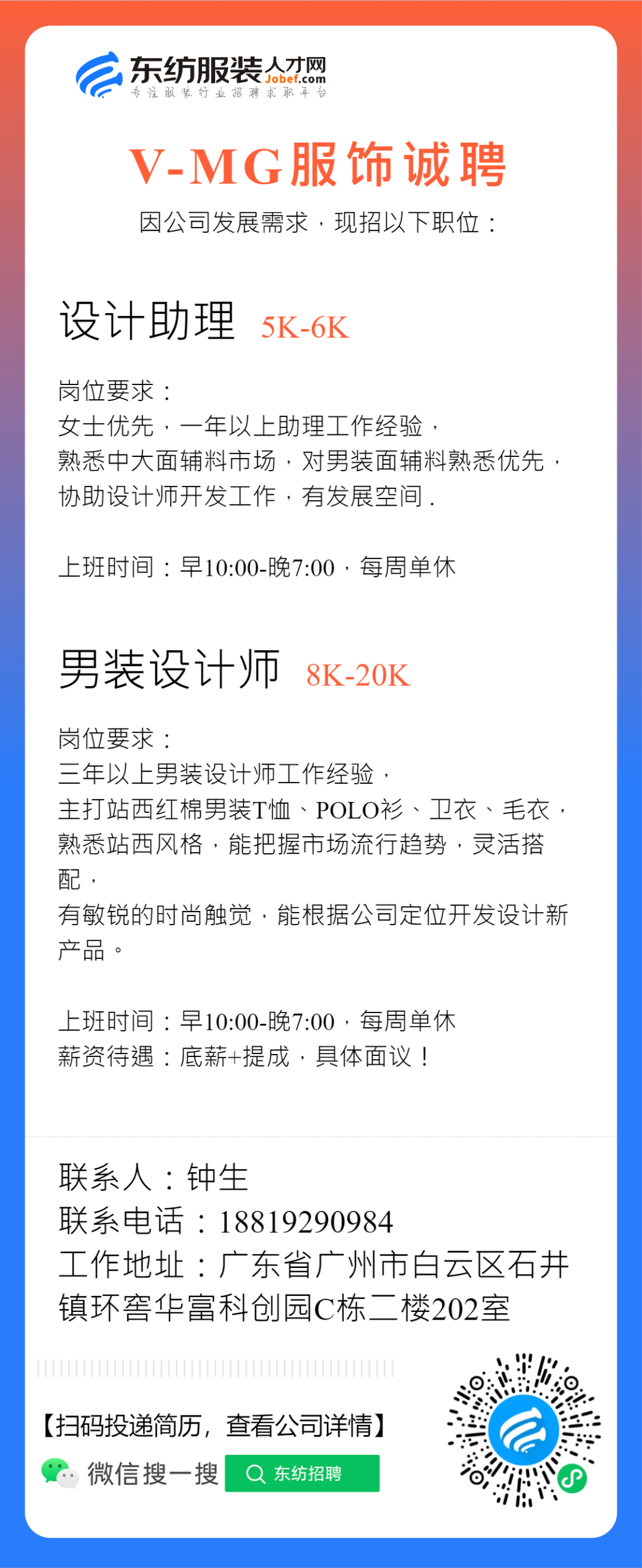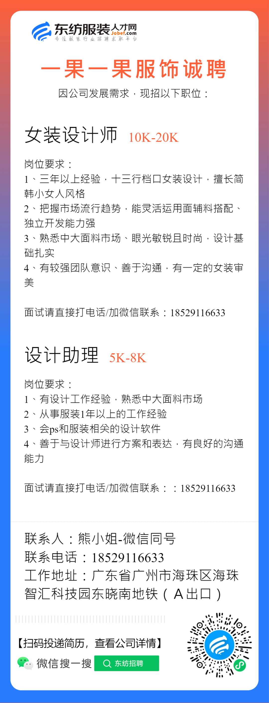 服装招聘·设计类丨2. 28号,女装设计师、男装设计师、童装设计师、设计助理.....