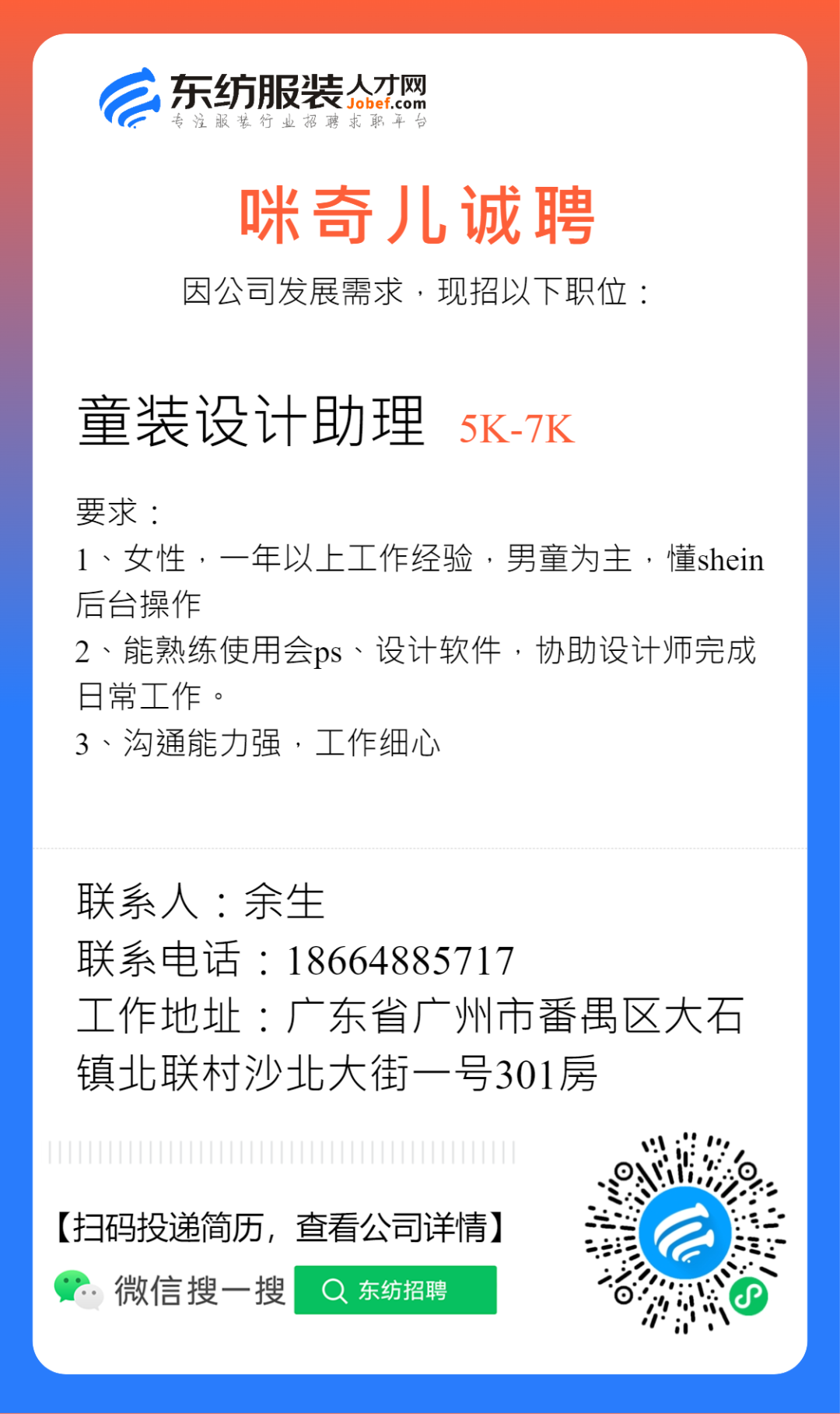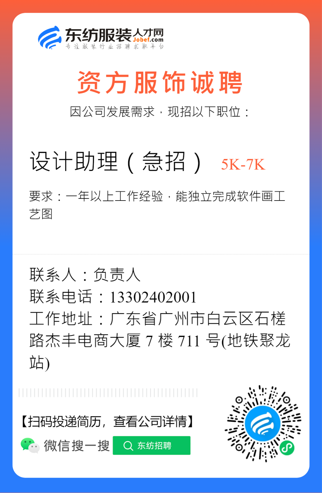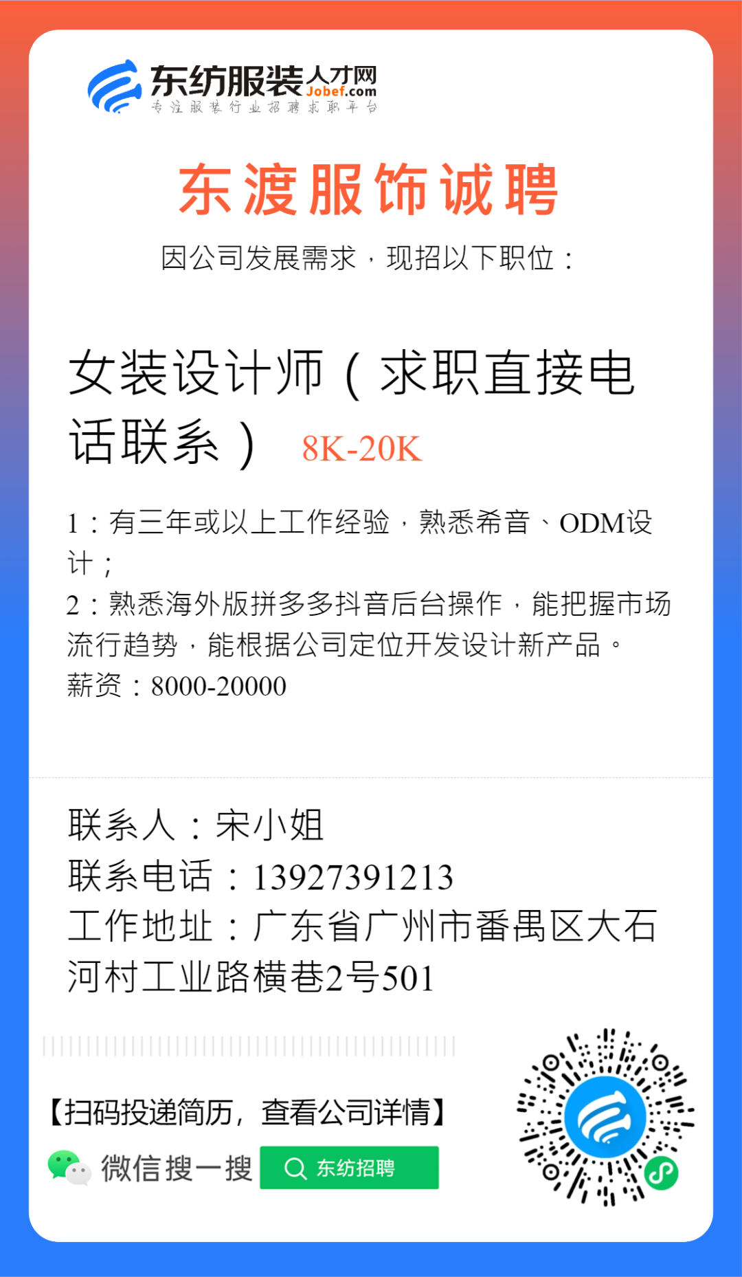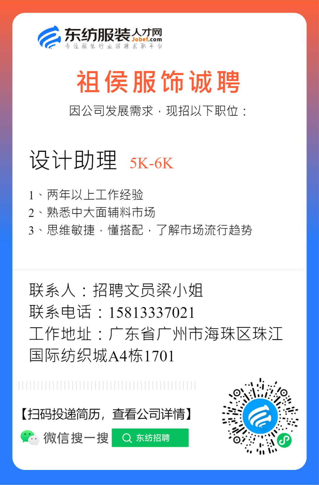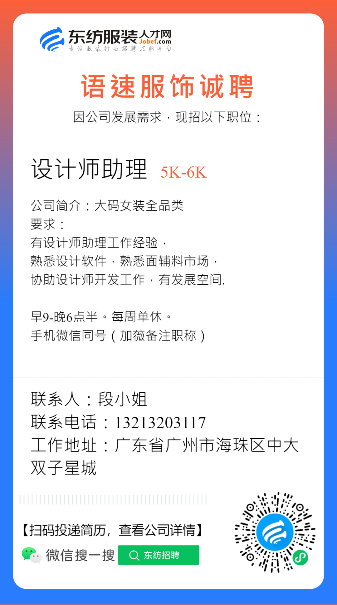 服装招聘·设计类丨2. 28号,女装设计师、男装设计师、童装设计师、设计助理.....