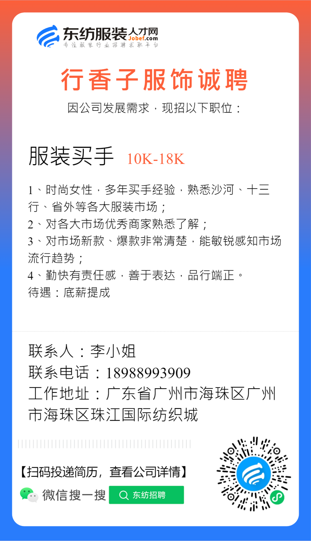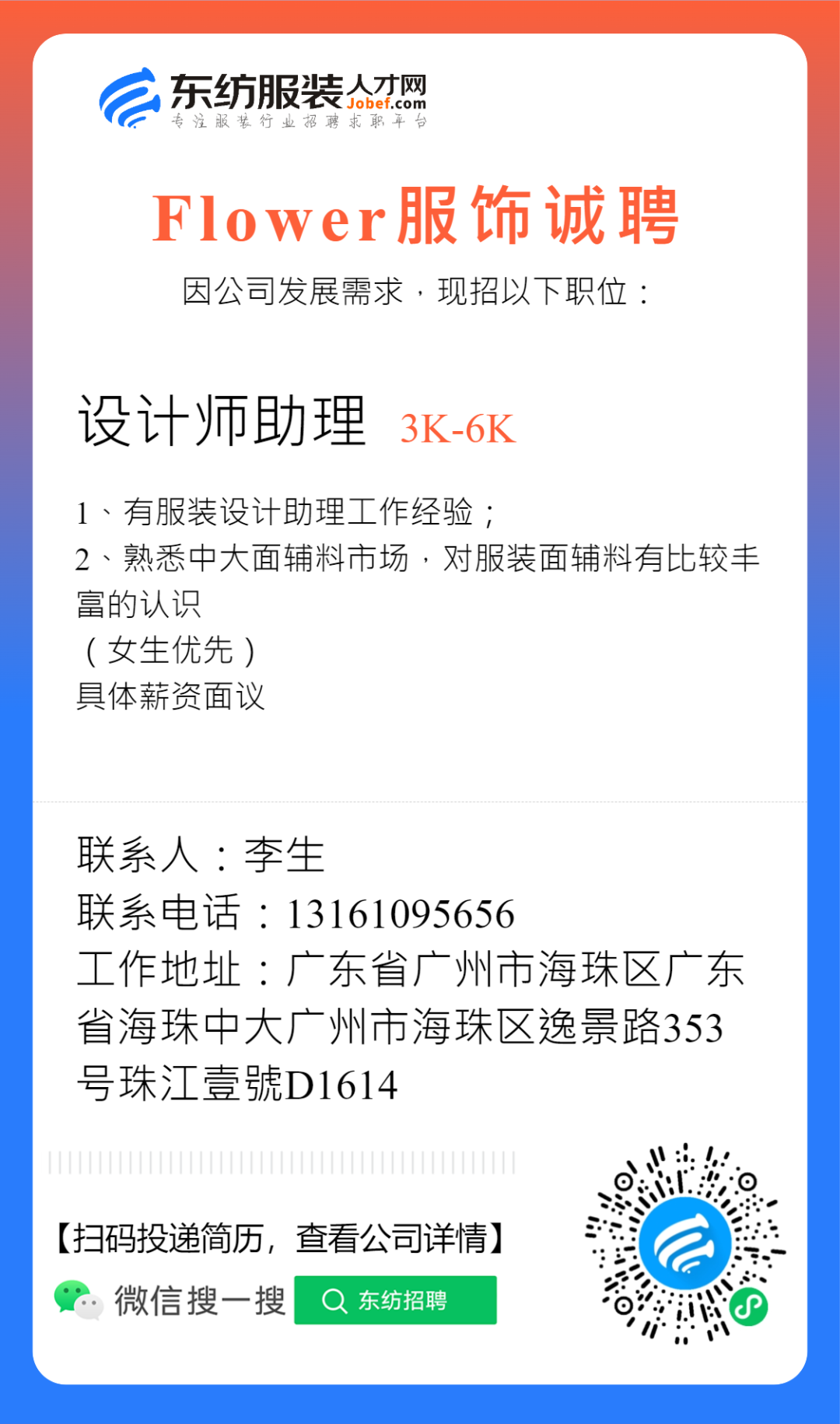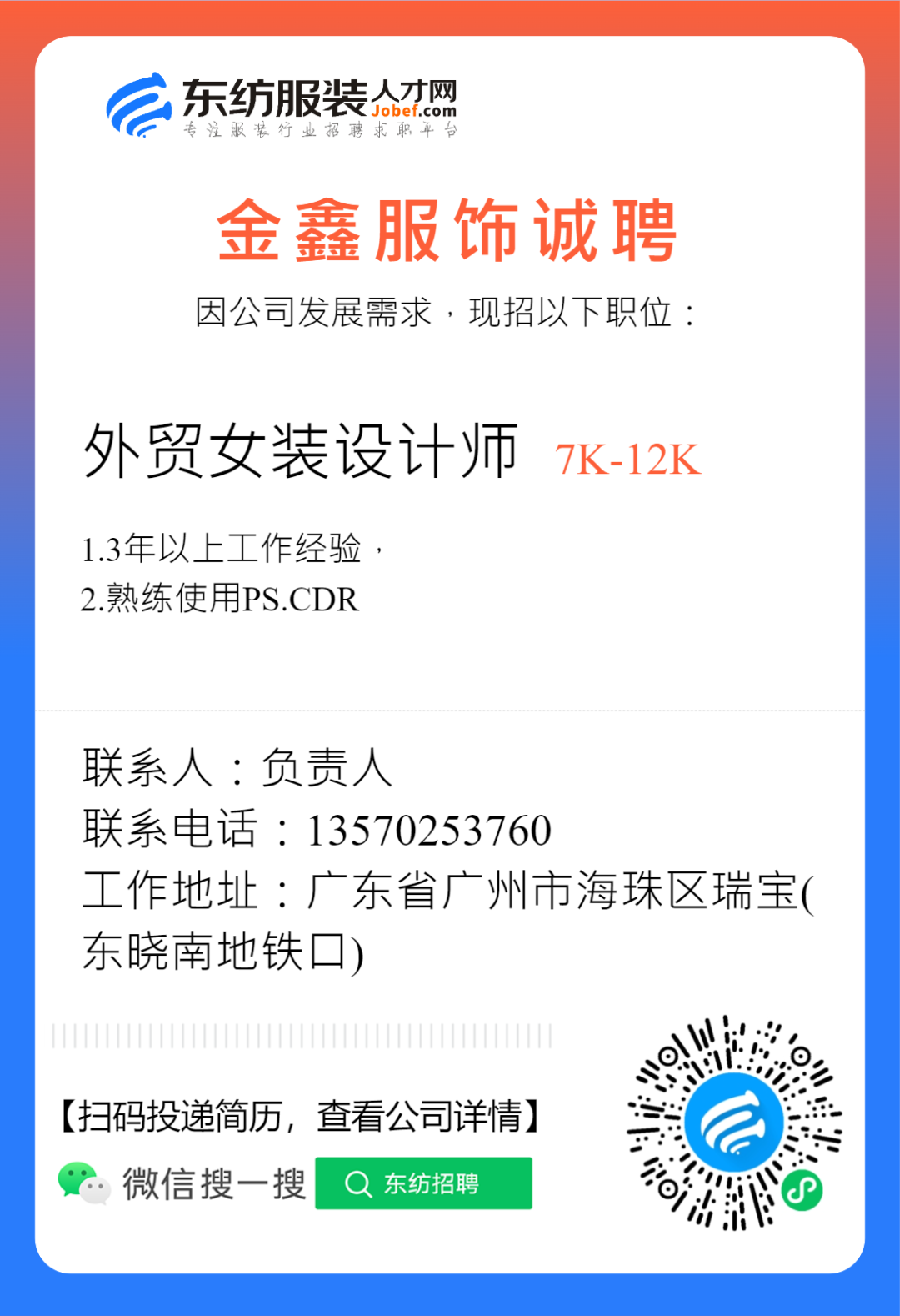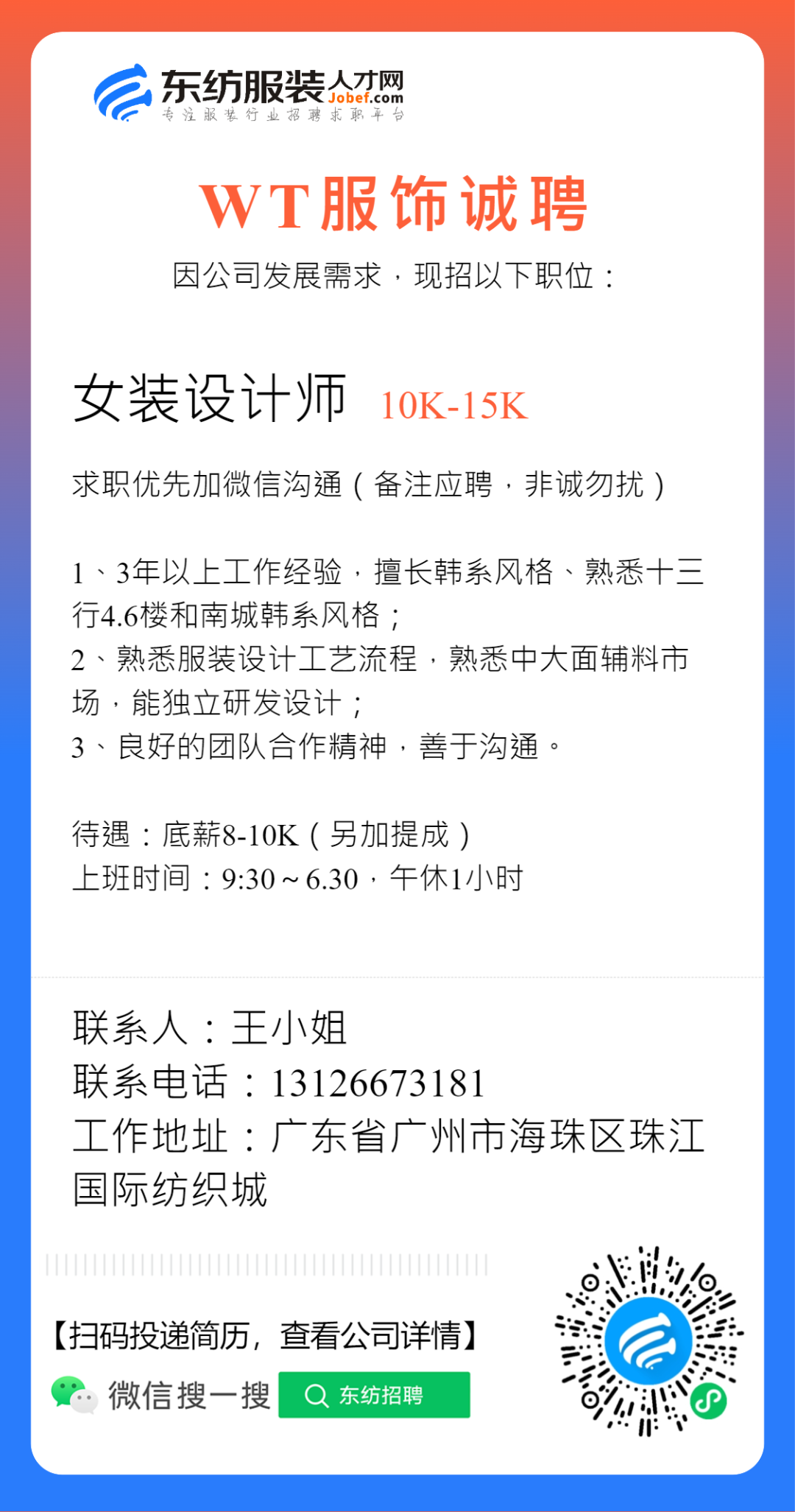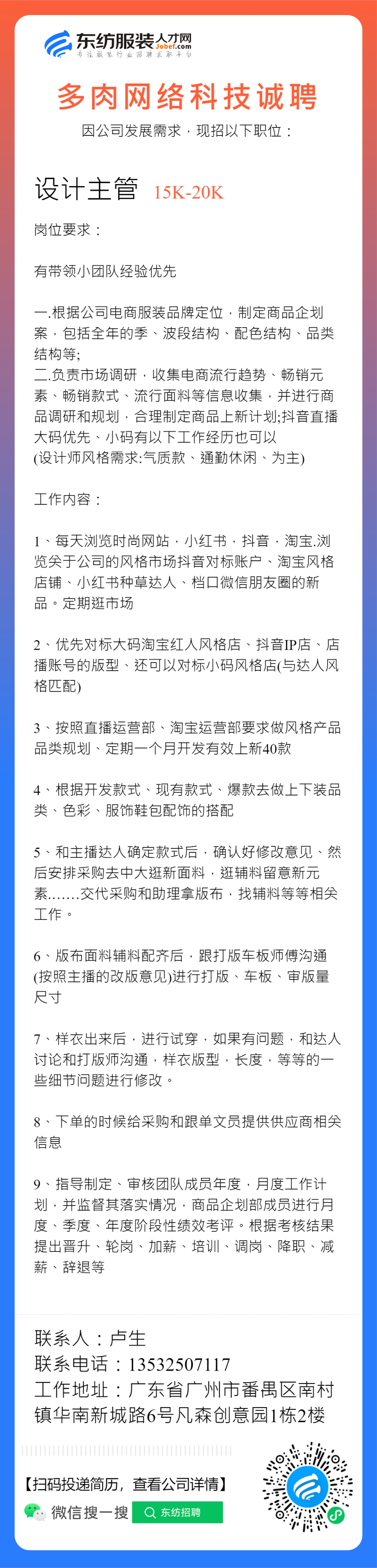 服装招聘·设计类丨2. 28号,女装设计师、男装设计师、童装设计师、设计助理.....