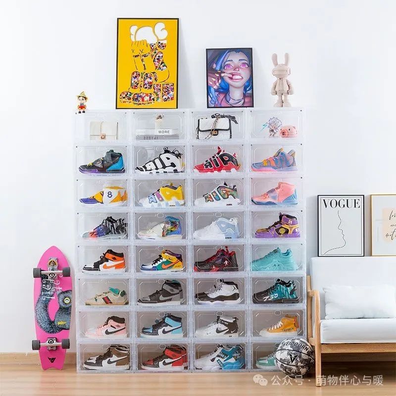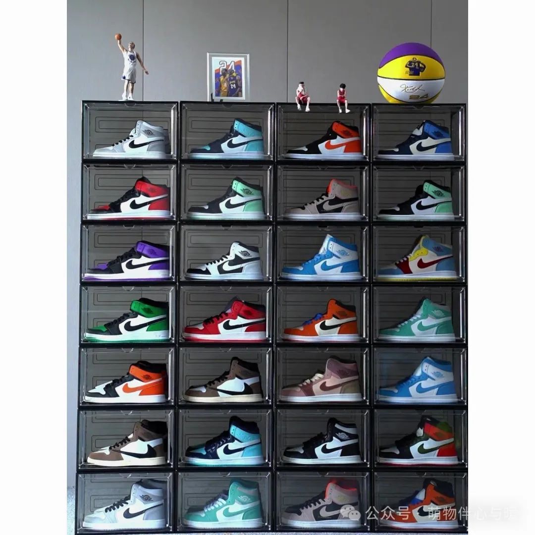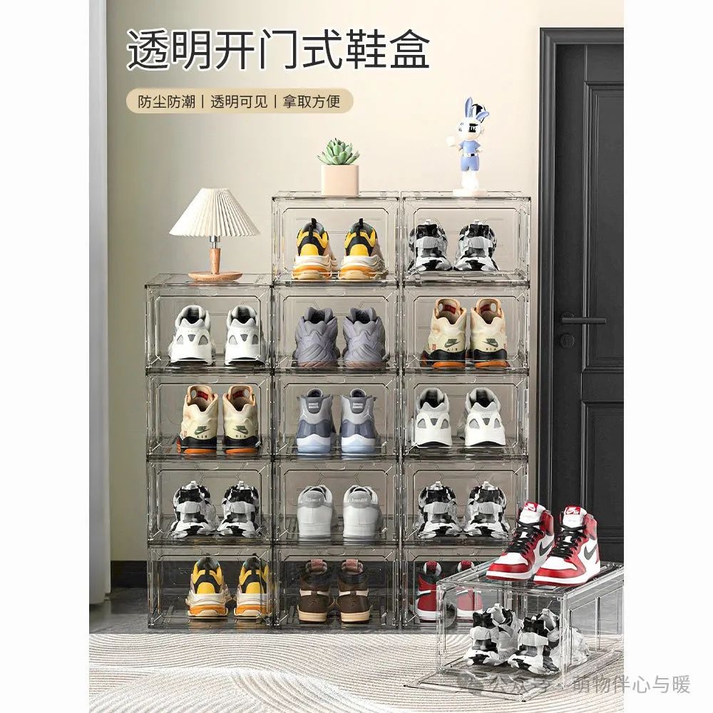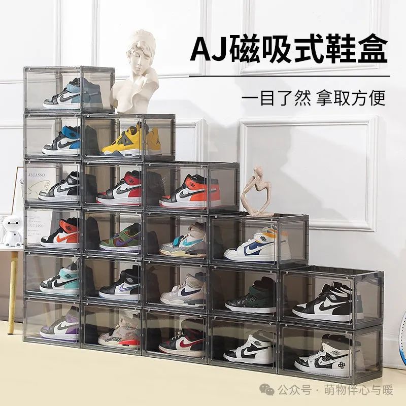 aj鞋盒收纳盒球鞋防氧化带磁鞋柜透明鞋子收纳塑料网红收藏鞋墙