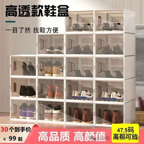 潮本仕加厚大号鞋盒开门式自由组合透明收纳盒家用防氧化宿舍鞋柜