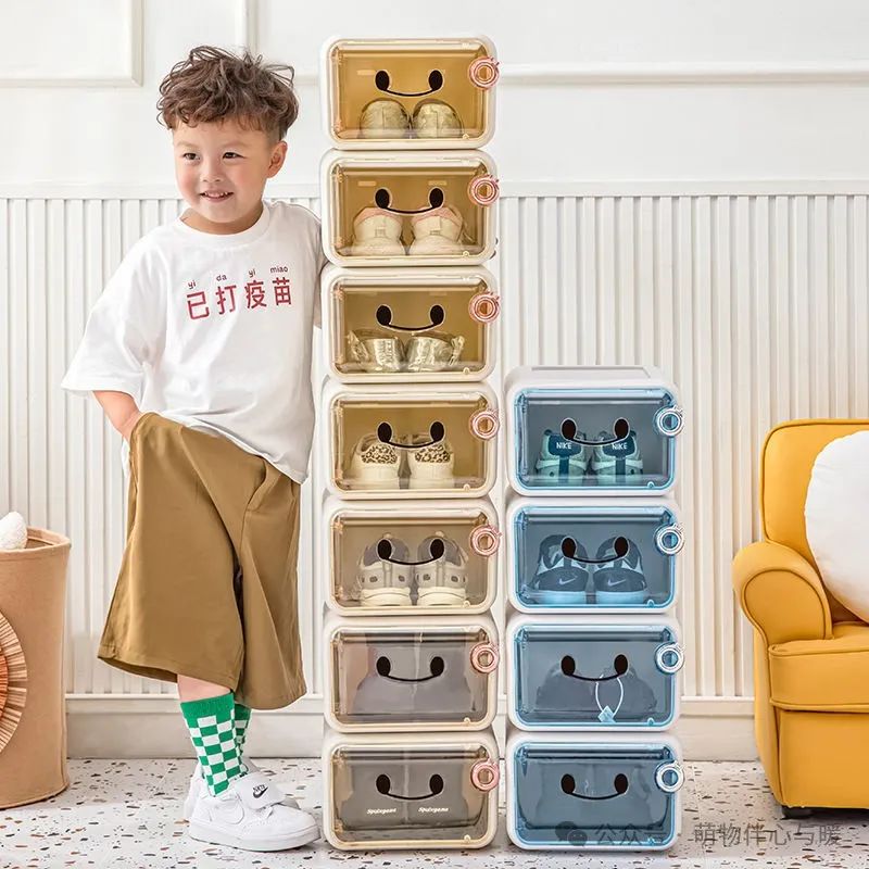 儿童鞋盒卡通透明宝宝鞋子收纳盒神器省空间家用防尘塑料鞋架鞋柜