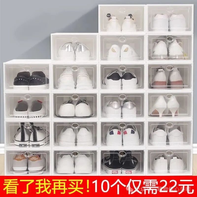20个装鞋盒收纳盒透明鞋柜抽屉式翻盖鞋子收纳神器抽拉式防尘