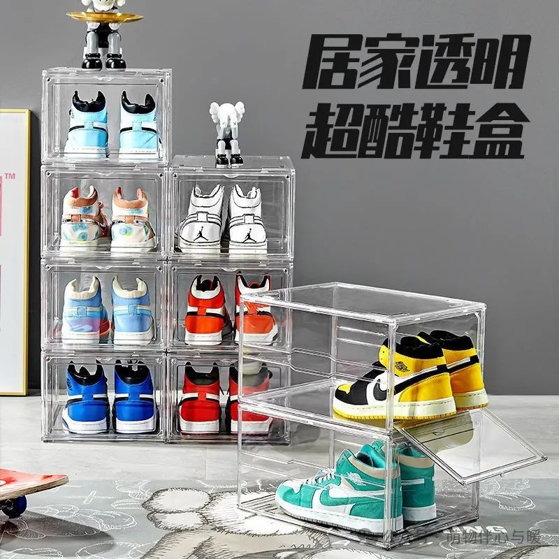 鞋盒磁吸侧开鞋盒硬塑料加大宿舍收纳盒鞋盒亚克力
