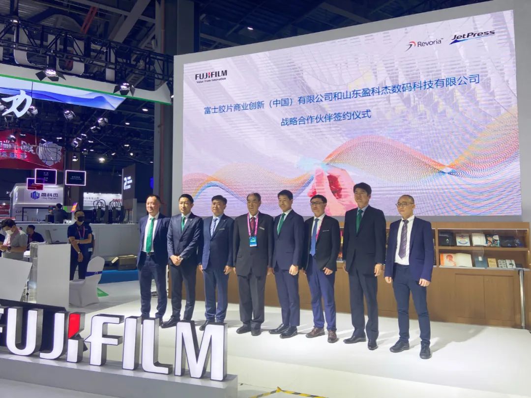 展会期间,盈科杰与富士胶片商业创新(中国)有限公司(以下简称“富士胶片商业创新”)重磅举行了战略合作签约仪式。签约仪式现场,盈科杰董事长董瑛表示,在与富士胶片商业创新过去合作的一年时间中,盈科杰深刻感受到富士胶片商业创新技术的领航性,也取得了一系列的合作成果。未来,盈科杰将不忘初心,进一步深化与富士胶片商业创新的合作领域范围,双方协同进步,发挥互补优势,共谱印刷行业新篇章。最后,双方各位领导在大家的见证下进行了隆重签约并合影留念。