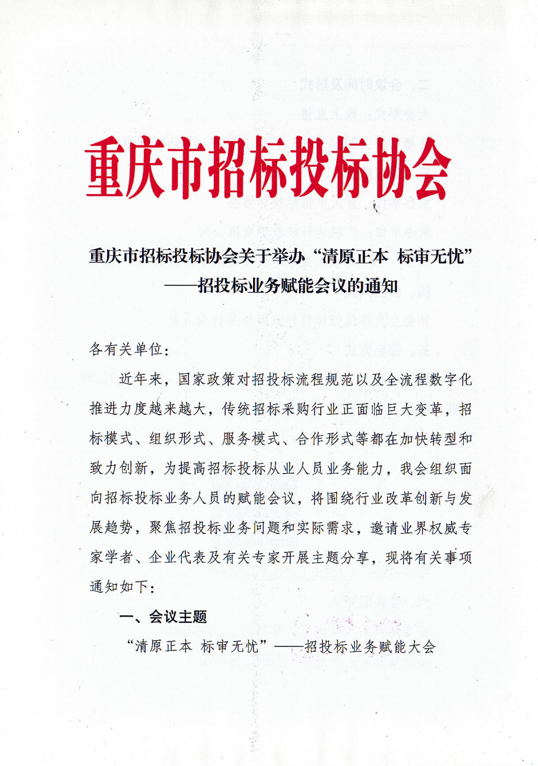 重庆招标投标协会关于举办招投标业务赋能会议的通知