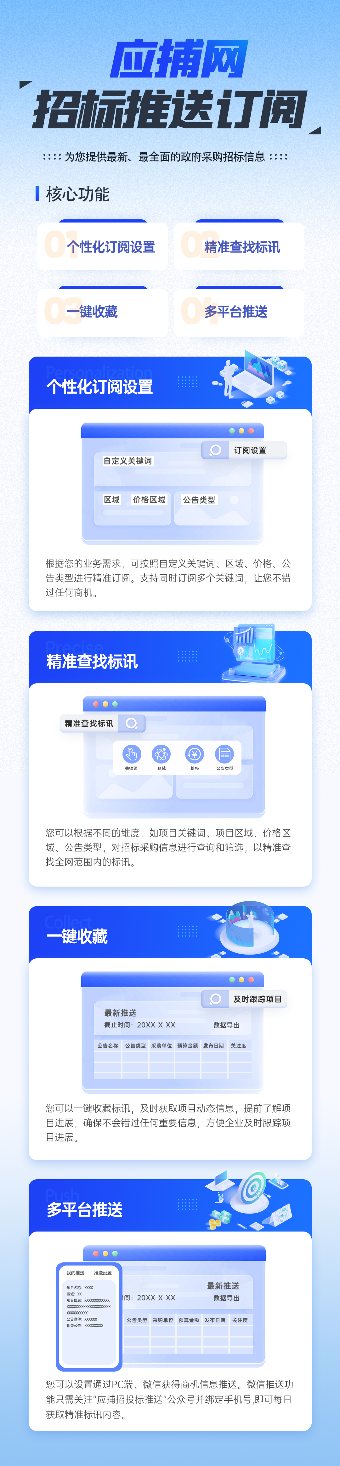 我们提供及时准确的招投标信息推送服务,让您省时、省力、高效获取项目进度和市场情报。