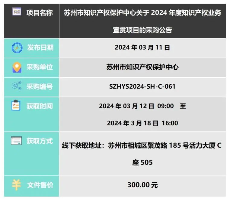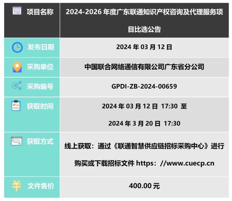 近七日知识产权招、投标信息(20240315)