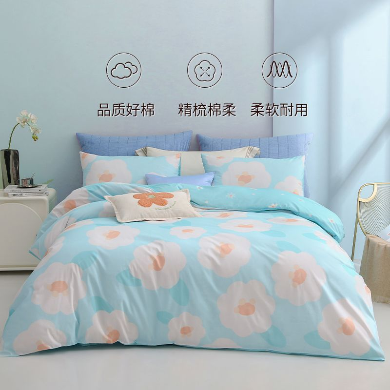 梦洁家纺纯棉印花四件套(赠送1对短枕套)