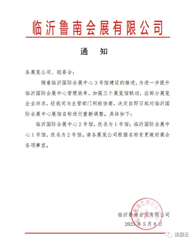 【通知】关于临沂国际会展中心展馆名称调整的通知