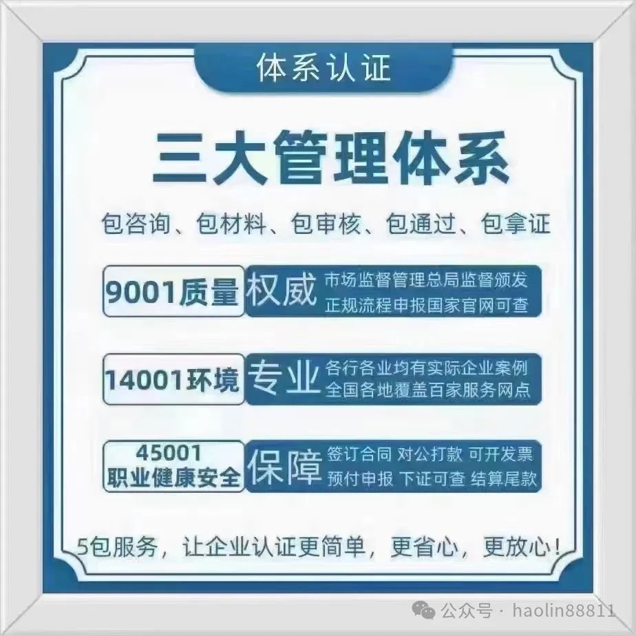 亲爱的朋友们,拥有ISO三体系认证的企业将更具优势,不论是招投标还是日常运营都将更加从容。不要犹豫,快来联系我们,为您的企业添砖加瓦吧!