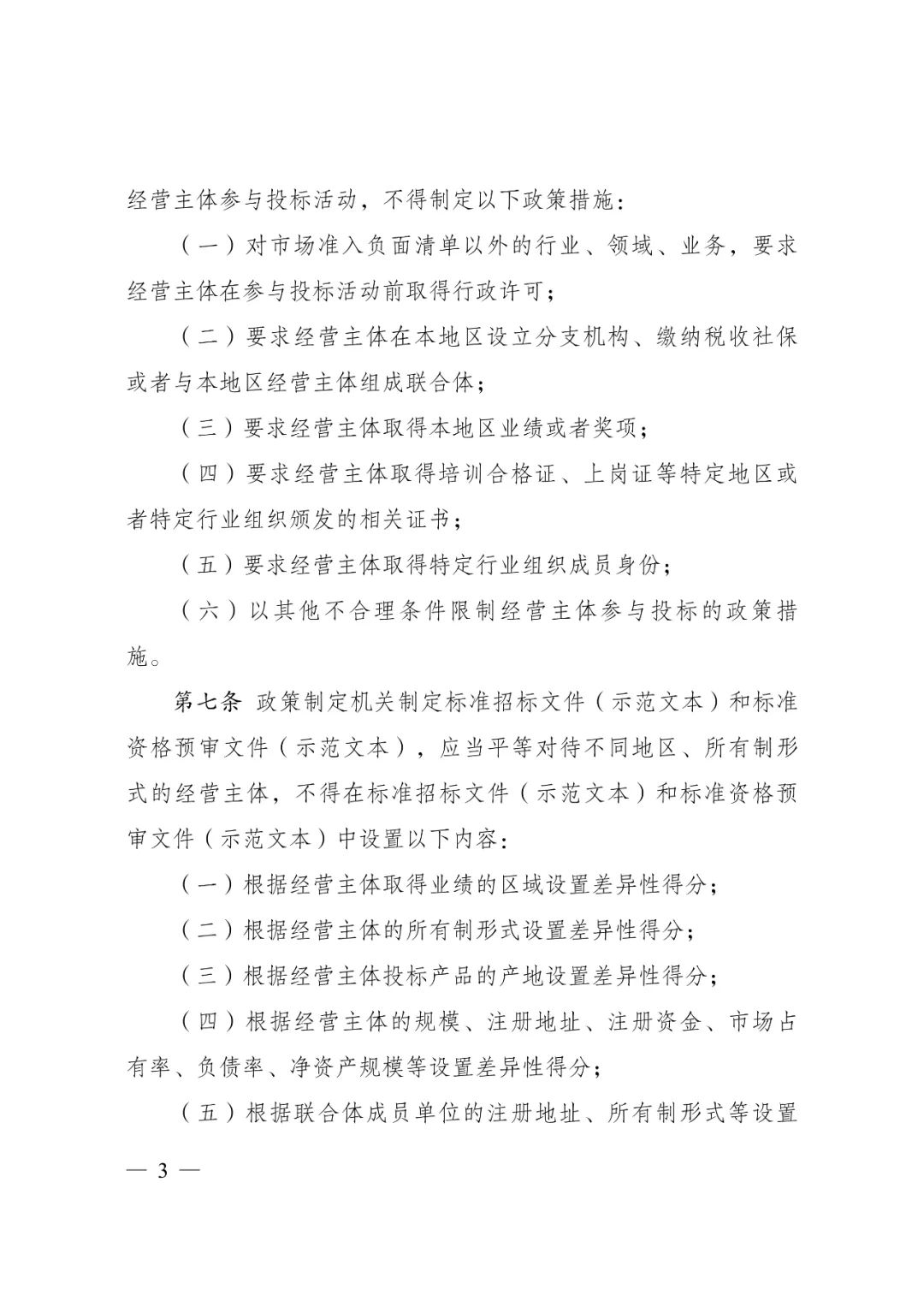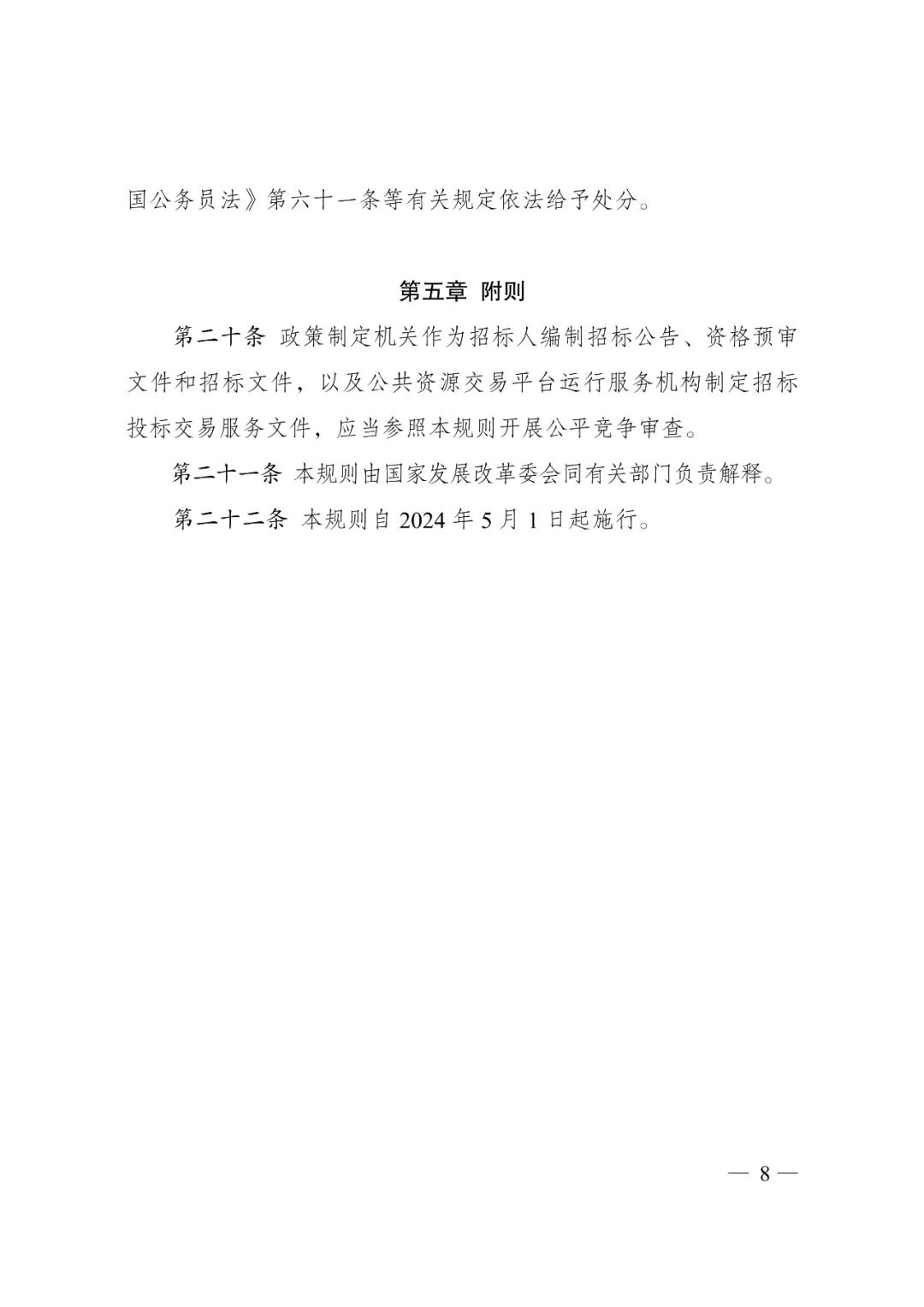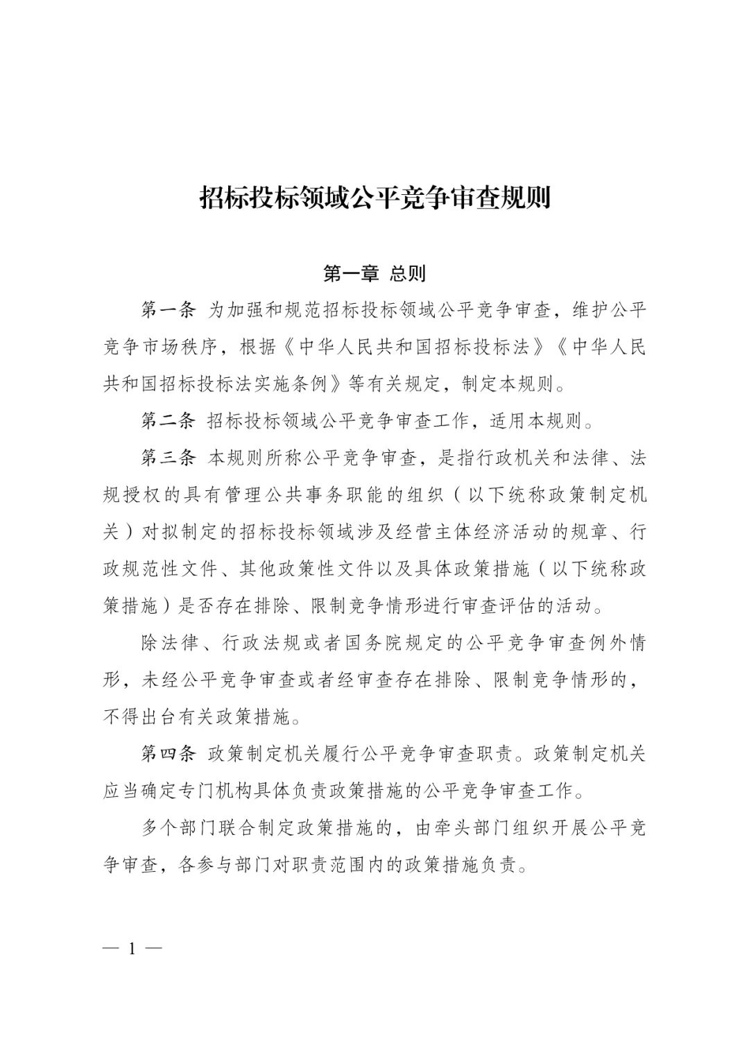 《招标投标领域公平竞争审查规则》已经2024年1月31日第8次委务会议审议通过,现予公布,自2024年5月1日起施行。