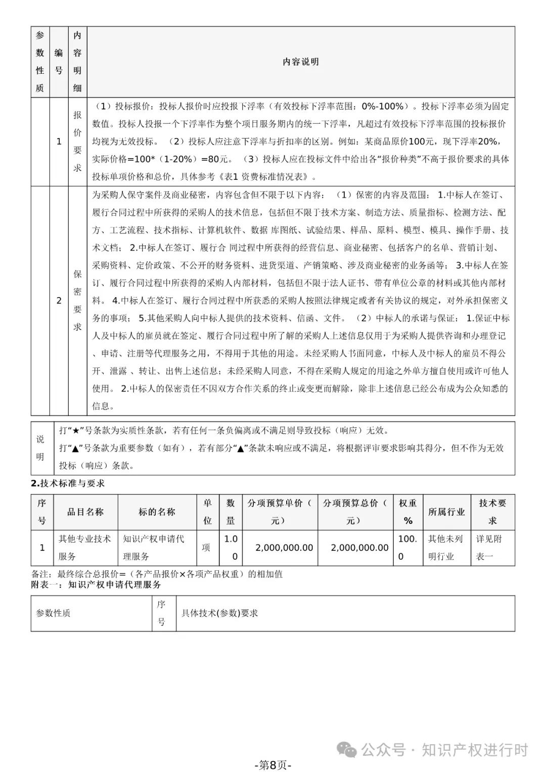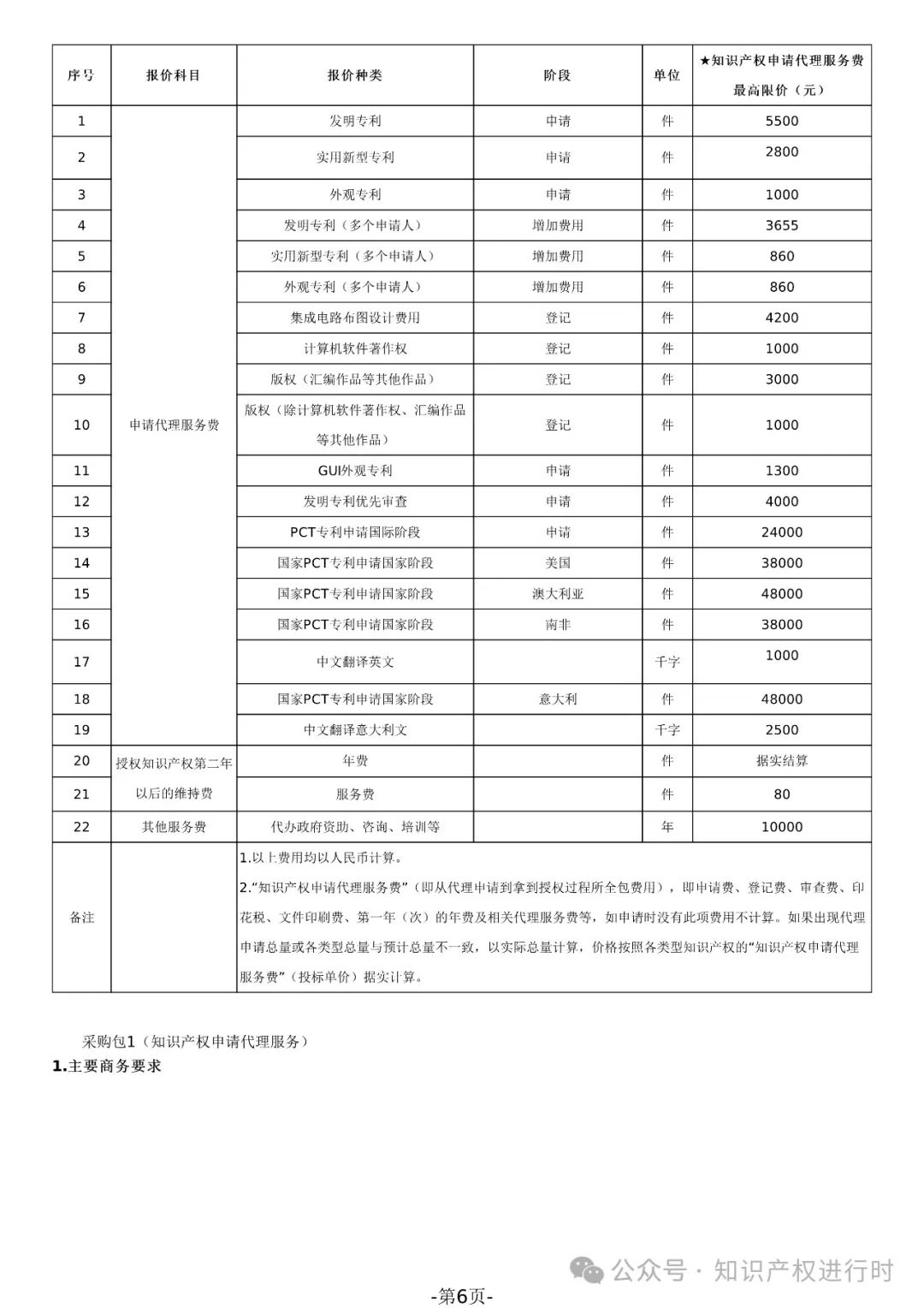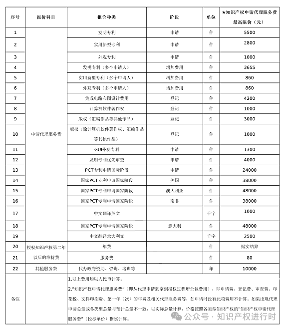 近日,中国政府采购网发布《广州番禺职业技术学院知识产权申请代理服务招标公告》。总预算200万元。在招标文件中列出了《资费标准情况表》。投标人应在投标文件中给出各“报价种类”不高于报价要求的具体投标单项价格和总价。发明专利:5500元/件