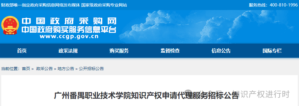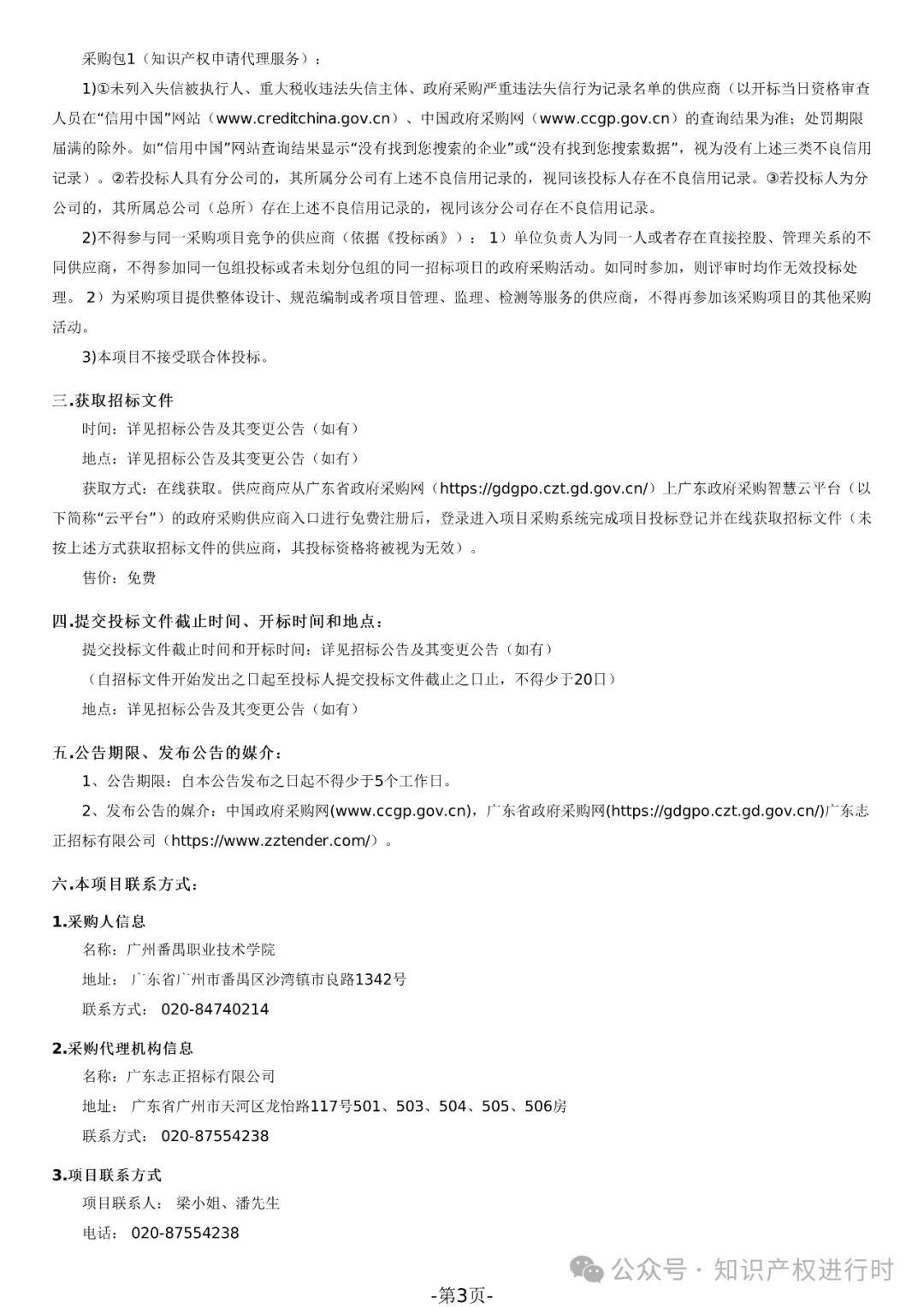 广州番禺职业技术学院知识产权申请代理服务招标公告