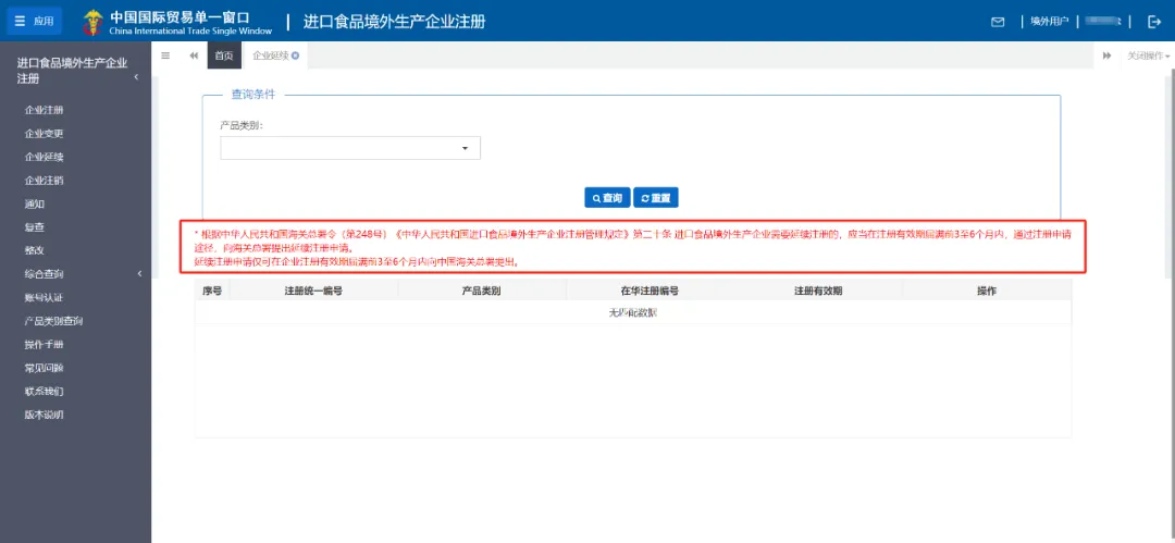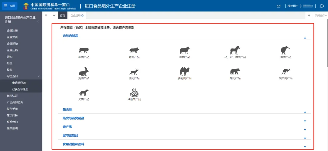 近年来,我国积极推动优质农食产品的准入和进口。仅2023年,就有来自51个国家和地区的146种次优质农食产品取得准入资格获批输华,以此不断满足国内消费多元化需求和人民对美好生活的向往。三年前的2021年4月,海关总署正式对外发布第248号总署令《进口食品境外生产企业注册管理规定》,并于2022年1月1日起正式实施。截至目前,已有85163个境外生产企业取得进口食品在华注册资格,推动我国2023年全年食品进口总额达到1386亿美元,进口总量达1.1亿吨,同比增长8.5%。进口食品企业注册一直是广大境外生产企业和国内进口商关注的热门话题。优顶特研究院早在248号令实施前后就曾推出《248号令话你知》连载,结合官方释义逐条对注册要求进行解读,深受广大小伙伴欢迎。此后,优顶特研究院也通过线上直播、线下培训、专题文章解读等方式为大家梳理注册相关流程、总结申报要点。应广大小伙伴要求,我们对注册过程中遇到的技术问题和实战经验,以问答的方式分享给大家,希望能够帮助到正在或者将要在华注册食品企业。如何判别拟注册产品是走推荐注册流程还是非推荐注册流程?网页登录“中国国际贸易单一窗口”,进入进口食品境外生产企业注册系统。在“产品类别查询”页面,可以通过“HS编码”(推荐)、“商品名称”或“检验检疫编码”进行检索。在查询结果中即可判别该产品是否需要官方推荐注册。同时还可以确认产品注册时,应当选择的产品类别。请确认您的产品是否属于“新鲜蔬菜、植物性调味料(未磨)、干豆、食用谷物(除大米外)、油籽油料、未加工咖啡豆、未加工可可”中的类别,这些产品的输华境外生产企业办理在华注册、更新和注销事宜时,需要请出口国家或地区植物检疫主管部门联系中华人民共和国海关总署动植物检疫司,邮箱为dapq@customs.gov.cn。工厂已经申请账号,但是无法进入“所在国家(地区)主管当局推荐注册,请选择产品类别”项下的任何注册入口,如下图:请检查您的账号是否已经通过企业所在国家主管当局的认证。只有处于“已认证”状态的账号,才能提出“需要官方推荐”(产品)的注册申请。问:工厂很多年前就已经在华注册了,想要延续注册,但发现在“企业延续”下没有相关的产品类别可以选择,怎么回事?(1)账号状态是否为“已认证”,如果未认证,请做认证后再查看延续;(2)页面中显示的“企业名称”和“所在国家(地区)注册号”是否完全匹配工厂目前的在华注册信息。如果发现错误,请重新注册账号并认证。如果未发现错误,请核对工厂在华注册有效期。根据中华人民共和国海关总署令(第248号)《中华人民共和国进口食品境外生产企业注册管理规定》第二十条 进口食品境外生产企业需要延续注册的,应当在注册有效期届满前3至6个月内,通过注册申请途径,向海关总署提出延续注册申请。延续注册申请仅可在企业注册有效期届满前3至6个月内向中国海关总署提出。如果时间已经不满足以上要求,则可能需要重新在华注册或尝试联系企业所在国家主管当局寻求帮助。(1)首先请确认您需要添加的产品是否已经准入中国。如未准入,请等待两国签署相关议定书,将该产品纳入贸易范围。(2)如果需要新添加的产品与企业此前在华注册过的产品属于同一产品类别(如水产企业添加新的水产种类),在“企业变更”项下选择对应的产品类别,填写并提供对应的材料即可提交申请。如果需要新添加的产品与企业此前在华注册过的产品不归于同一产品类别,则需要通过“企业注册”选项进行新的注册申请。如果大家在注册过程中遇到其他技术问题,欢迎在后台或者评论区留言互动。微信 :