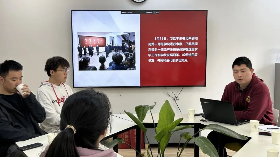 张北以“立家国天下之志,做国家栋梁之材”为主题给支部同学们上主题团课。他表示湖南第一师范学院被称为“千年学府、百年师范”,是毛泽东、蔡和森、李维汉等一大批革命先辈的母校,是毛泽东思想的发源地之一,也是马克思主义中国化的重要实践基地。此次习近平总书记同湖南第一师范学院师生代表亲切交谈,体现了总书记对教育事业的高度重视和对青年一代的殷切期望。