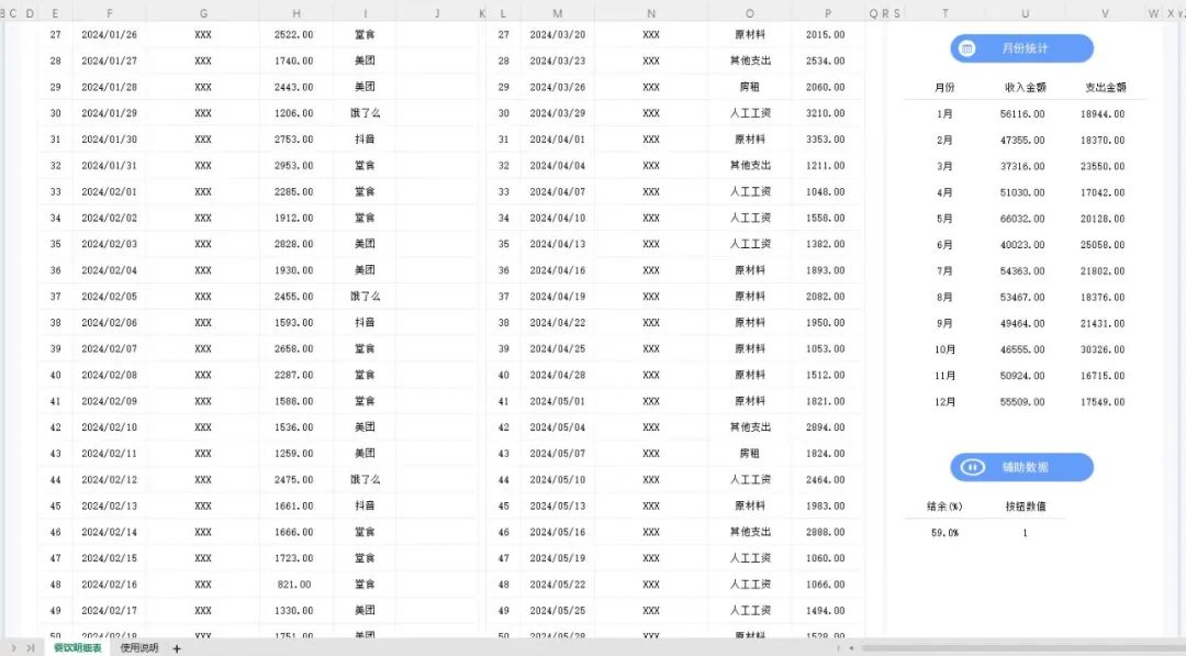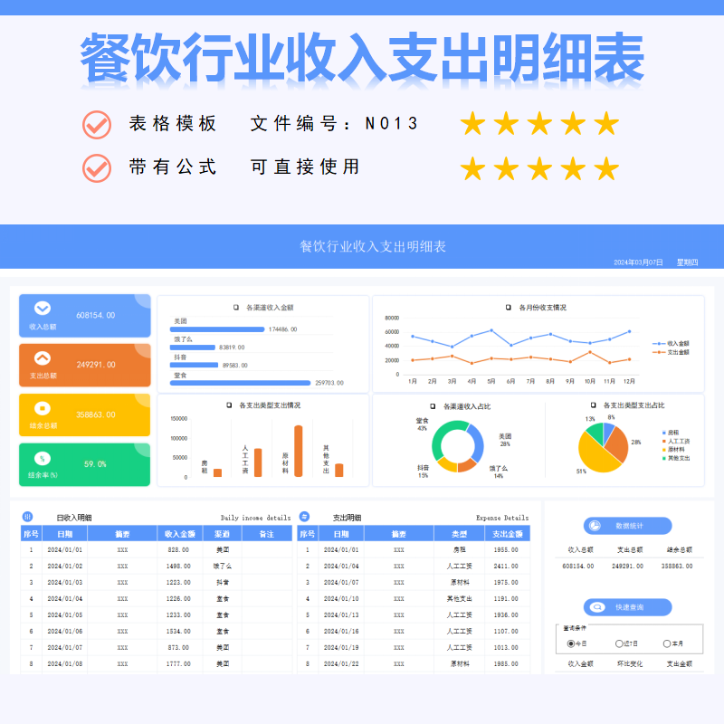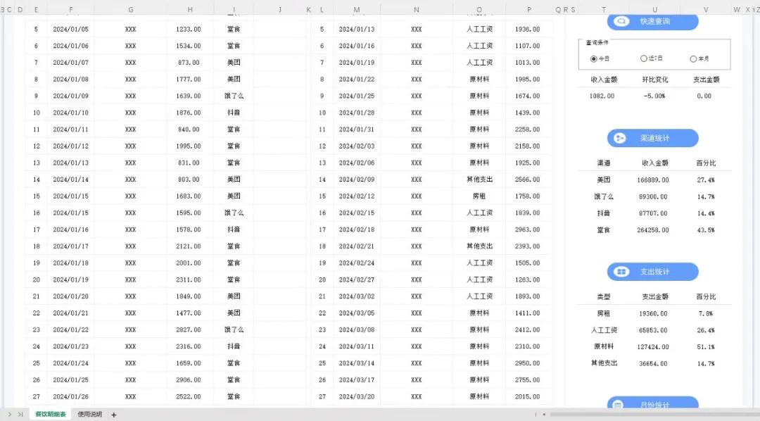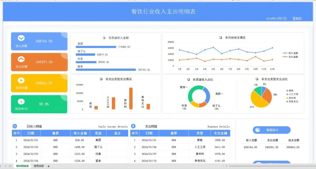 餐饮行业收入支出明细表具有以下功能: