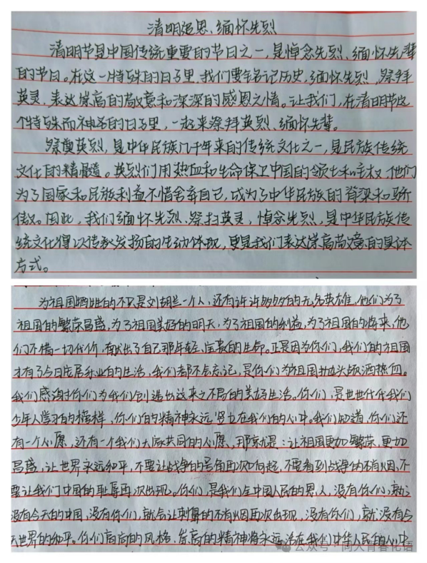 英雄先烈是我们中华民族的力量,也始终是我们内心的坚守和前进的力量。通过文字可以结合自身经历和感受,讲述革命英烈的事迹和精神,表达对他们的敬仰之情,更加深入地了解革命历史,增强爱国情感和民族自豪感。活动收到了许多感人至深的文章,通过文字重温先烈的精神遗产,令人动容更激励人心。