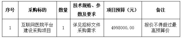 (一)标的名称:健康白云(云上健康)互联网医院平台建设采购项目。