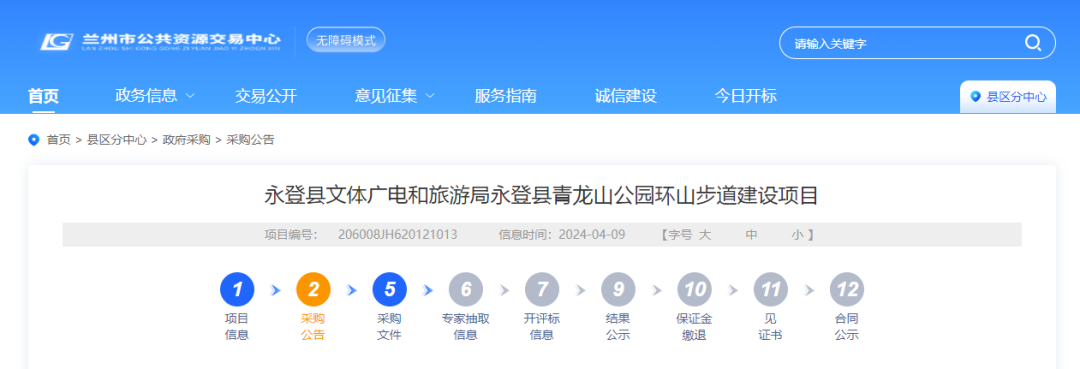 永登县文体广电和旅游局永登县青龙山公园环山步道建设项目公开招标公告