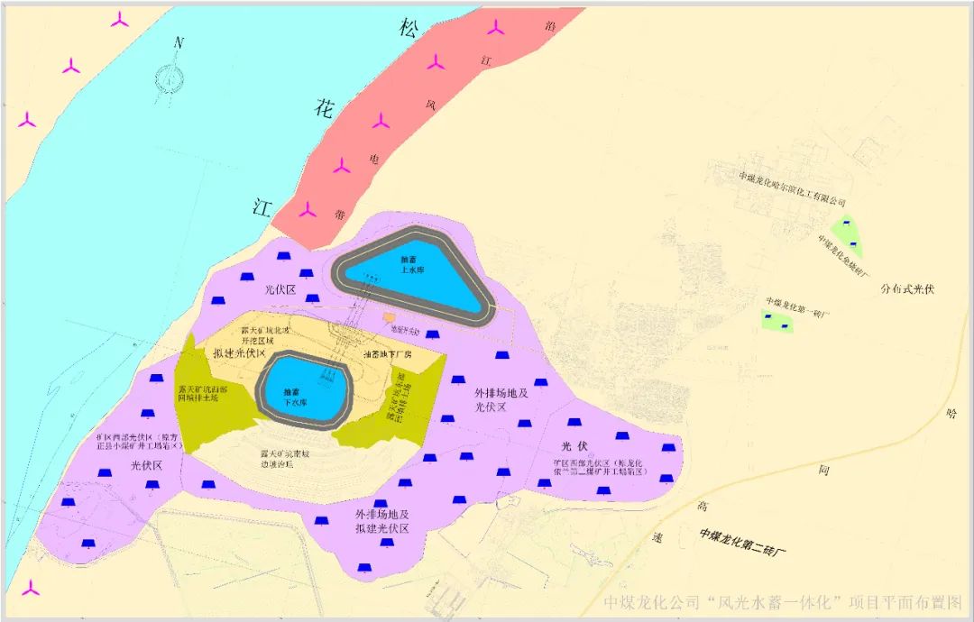 龙化公司在“碳达峰、碳中和”目标引领下,全面实施中国中煤“存量提效、增量转型”和“两个联营+”发展思路,实施“立足在煤炭生产上、潜力在抽水蓄能上,增量在风光电项目上,延伸在绿氢绿氨上”的产业规划,主营业务主要有:总投资27亿元年产240万吨的依兰第三煤矿进入生产阶段;涵盖国家“十四五”重点规划项目150万kW抽水蓄能电站项目、100万kW风电项目和50万kW光伏项目在内的总投资179.44亿元的“风光水储一体化示范项目”进入实施阶段(其中依兰30万千瓦万发风力发电项目即将开工建设);总投资50亿元年产300万吨的黑河市四季屯煤矿项目完成预可研阶段工作。规划项目主要有总投资190亿元的“一区三园”项目(新能源装备制造园、氢能示范园、绿氨化工园),一期投资50亿元的“中煤依兰煤矸石再造黑土生物农业循环经济产业项目”均已进入合作开发阶段。
