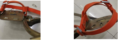 6、脚扣金属部件有无锈蚀,焊接处是否牢固,有无裂缝,脚扣皮带有无破损。