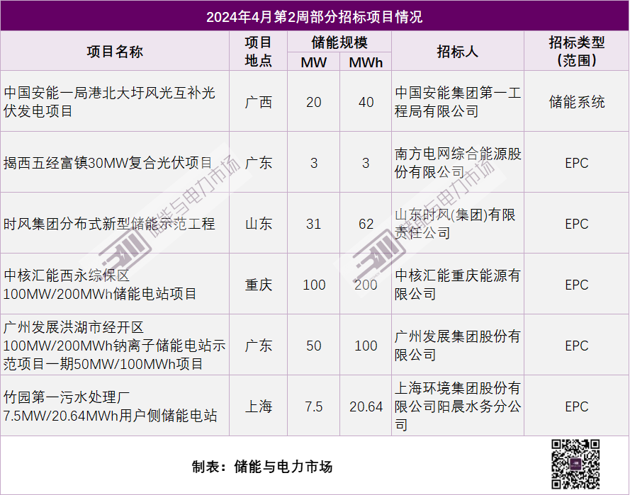 本周部分进展储能项目详情如下: