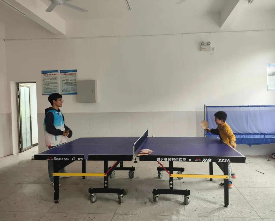 在作业辅导结束后,志愿者们带领小朋友开展了多种多样的课外活动,比如:打乒乓球,读课外书。每位小朋友都露出了最天真无邪的笑容。