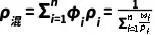 ——分别为i组分的体积分数和质量分数;