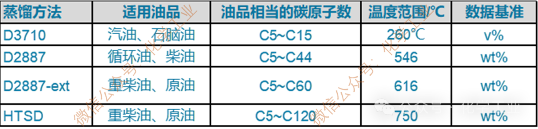 其他类型的蒸馏方法有:恩氏蒸馏(ASTM D86)、ASTM D1160蒸馏、ASTM D2887蒸馏、ASTM D3710蒸馏和HTSD蒸馏。
